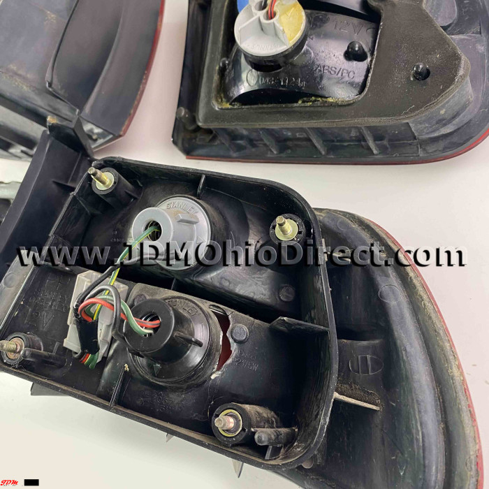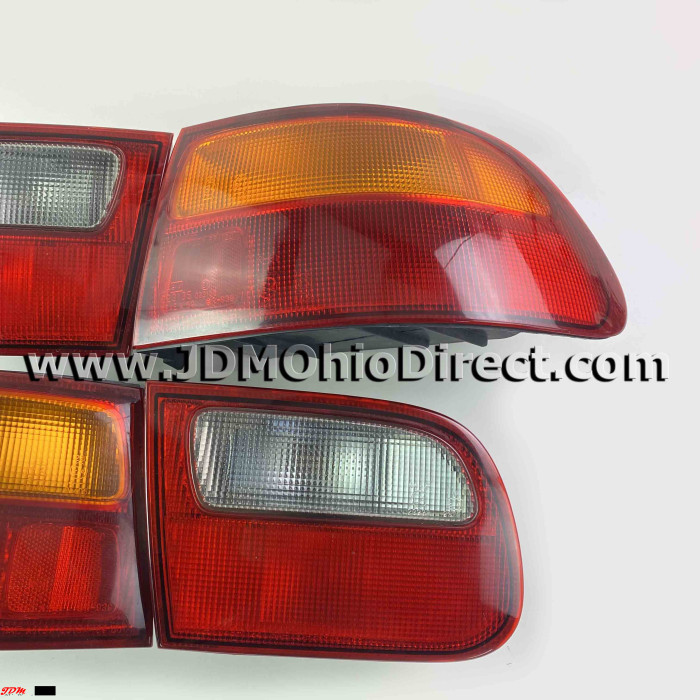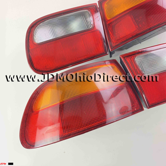 JDM EG6 Civic SiR Hatch Taillight Set. Taillights are in great used condition, but outer left taillight has a small missing section of plastic on backside. Front lenses are good. Taillights include harnesses, and bulbs. JDM taillights are different than USDM, as they do not have outer reflectors in them. Actual pictures shown.