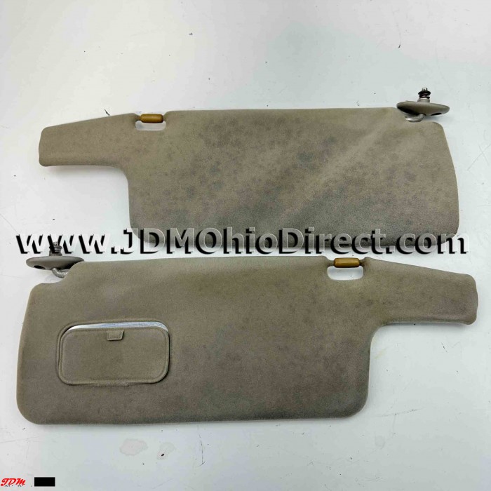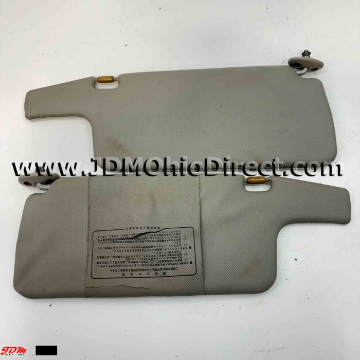 JDM EGG6 Civic SiR Sun Visors. Visors are in decent used condition, but do have some flaws as shown. Set has staining on the fabric side, and paperwork band has several cracks. Color is gray. Actual pictures shown.