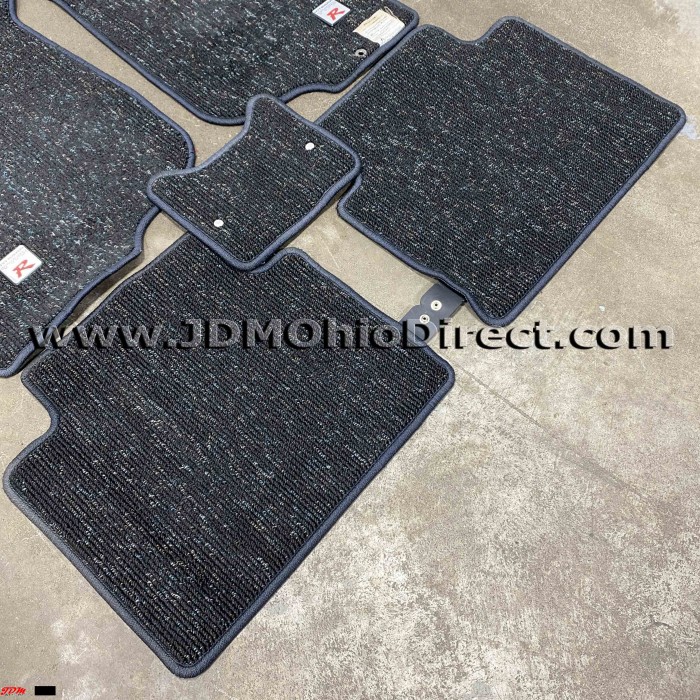 JDM DB8 Integra Type R 5pc Floor Mat Set. Floor mats are in good used condition with some wear on the front mats. Honda Access floor mats are black in color, with blue and gold speckle threading. Floor mats are designed for RHD vehicles. They can be used in LHD vehicles, but will not fit perfect. Actual pictures shown.
