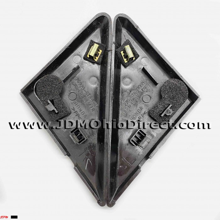 JDM DB8 Integra Type R Door Mirror Garnish. Garnishes are in good used condition, but one tab on right garnish is missing. Color is black. Actual pictures shown.