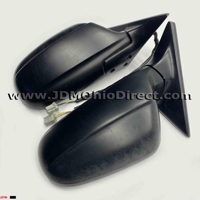 JDM DB8 Integra Type R Power Mirror Set. Mirrors are in great used condition, but have been resprayed flat black. Mirror angles are designed for RHD vehicles, but will fit LHD vehicles. Mirror angles will be off slightly if used on LHD vehicle. Mirrors are power, and Non-Folding. Actual pictures shown.