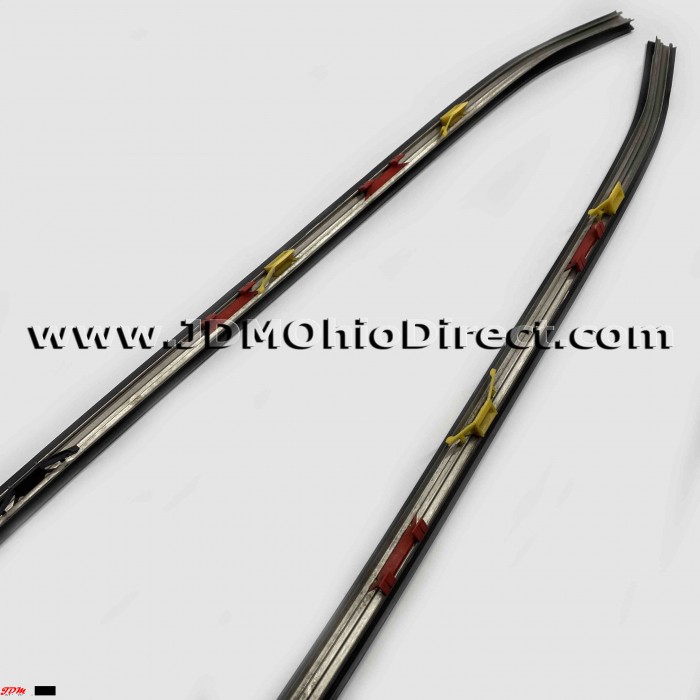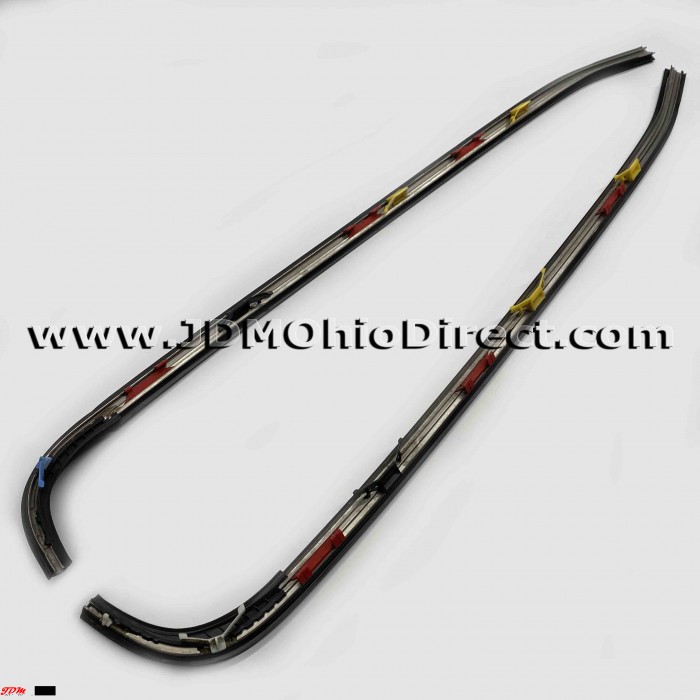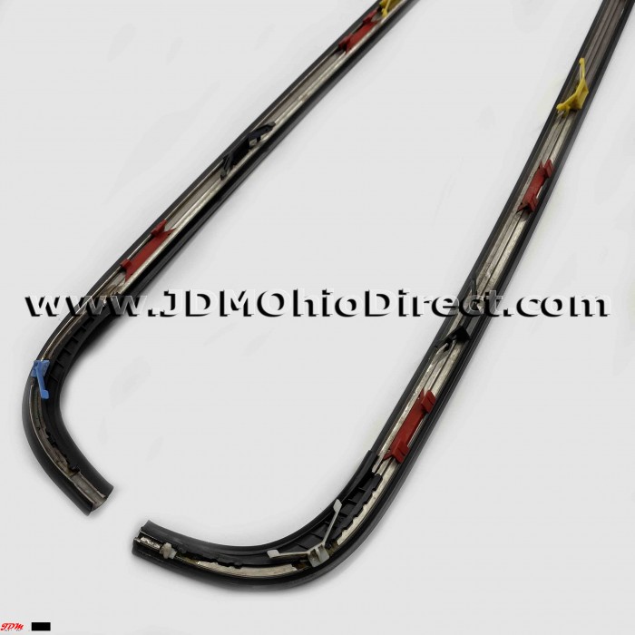 JDM DB8 Integra Type R Windshield Side Moldings. Windshield moldings are in good used condition, but weatherstripping is missing from right and left inner moldings as shown. Most of the clips are intact. Actual pictures shown.