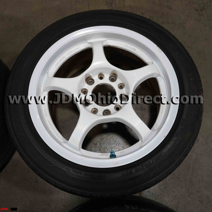 JDM A-Tech Monoblock White 15" Wheel and Tire Set. Wheels are in great condition with good tires. One wheel does have some rash. Actual pictures shown.