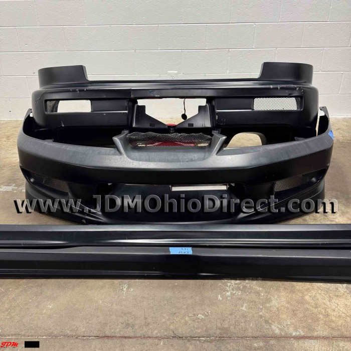 JDM DB8 Integra Type R 98spec C-West Full Aero Kit. Kit is in good used condition, but does have some flaws as shown. Front bumper tabs are good, with just a center crack as shown. Rear bumper has several minor cracks and left bumper tab will need repaired. Side skirts are good and include OEM skirts for mounting. Body kit is fiberglass, which makes repairs much easier. Actual pictures shown.