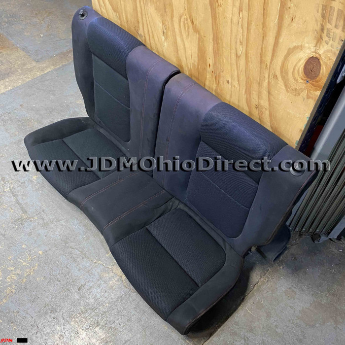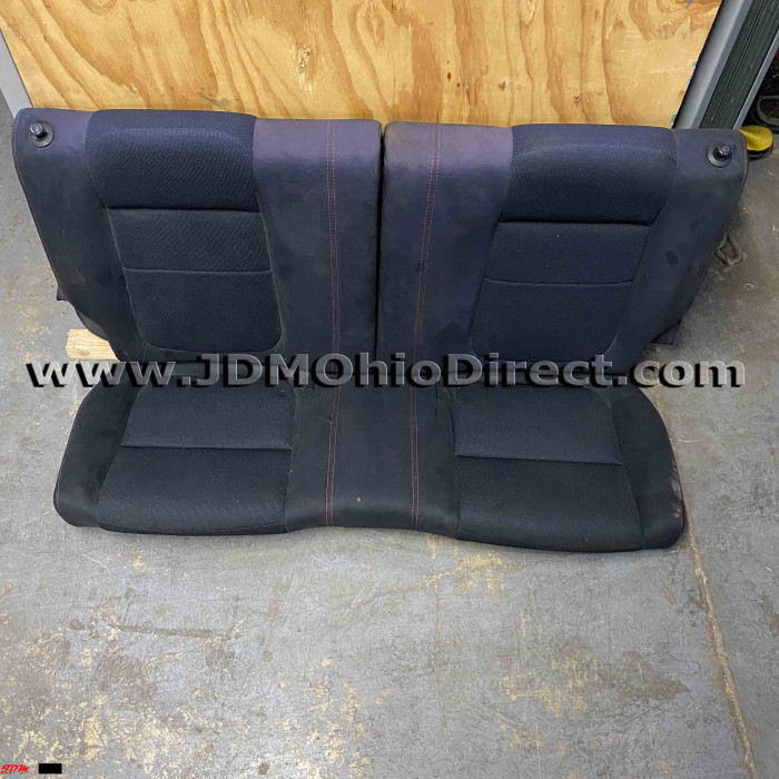 JDM DC2 Integra Type R Rear Seats Set. Seats are in great used condition, but does have minor sun fade at the top as shown. Rear seats include trunk carpet. Material is black suede with red stitching. Actual pictures shown.