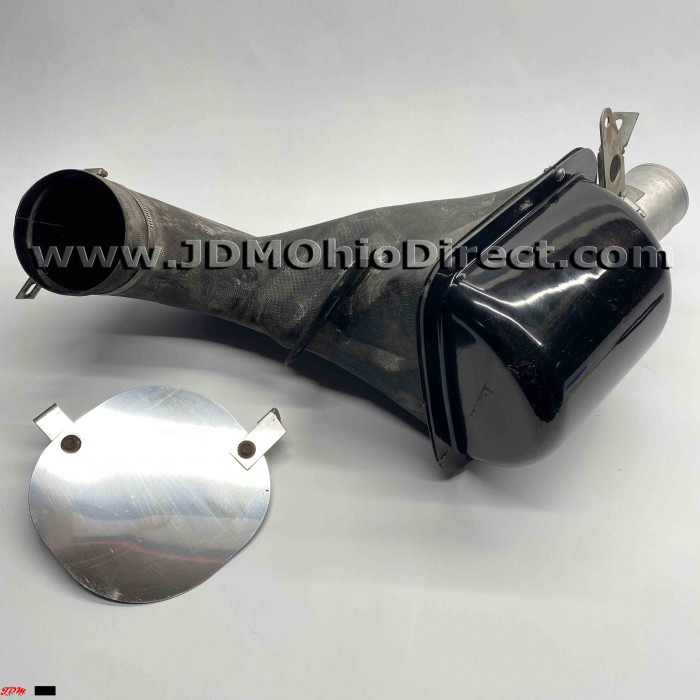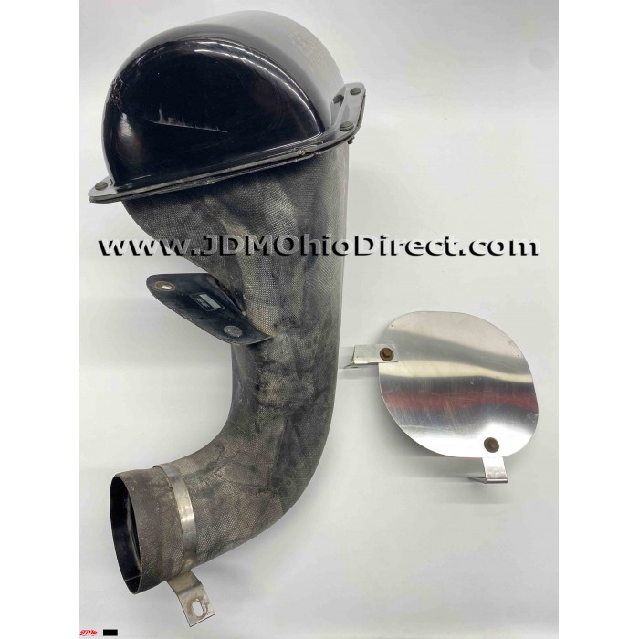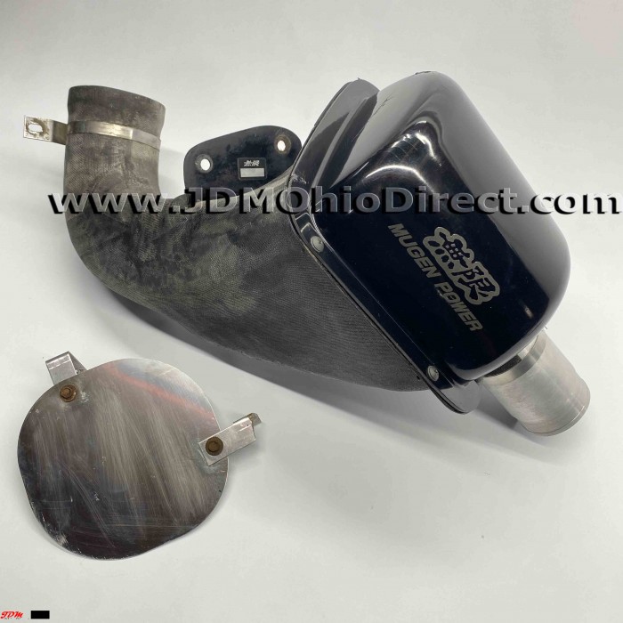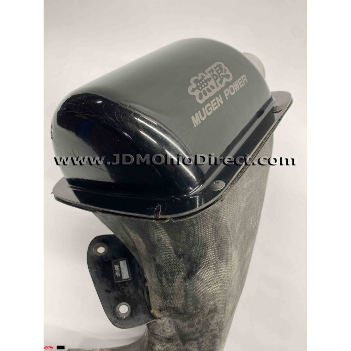 JDM EK9 Mugen Air Intake System. Air intake system is in great used condition, with only a couple small flaws. Lower section is slightly discolored, top section has 2 small repaired areas, and some stress cracks as shown. Intake is also missing lower elbow, but does include everything else shown. Actual pictures shown.