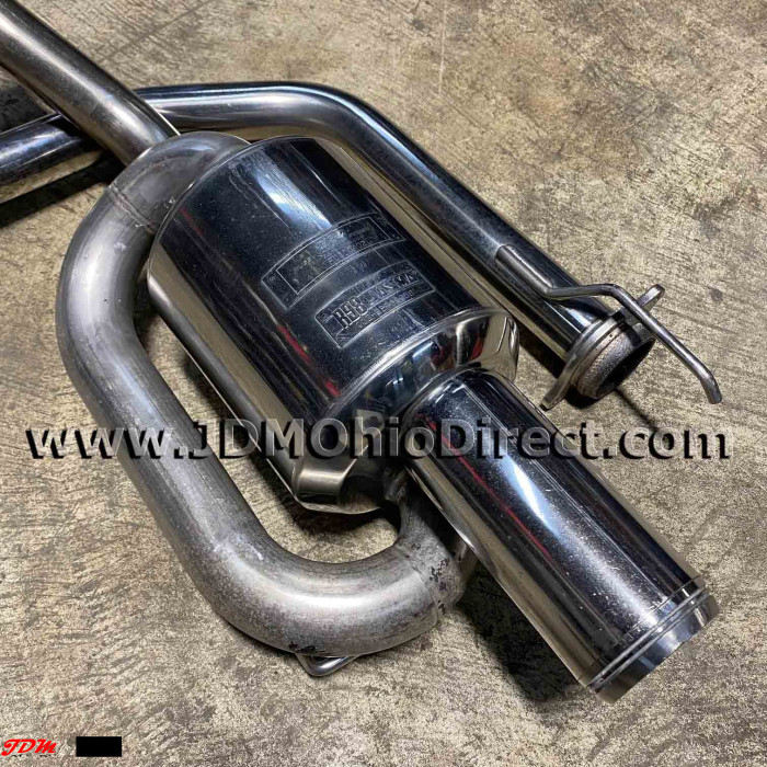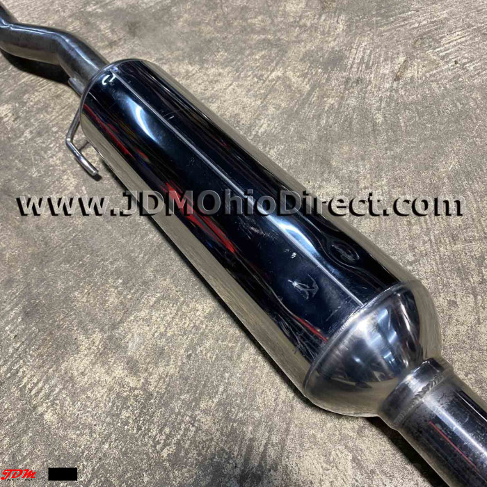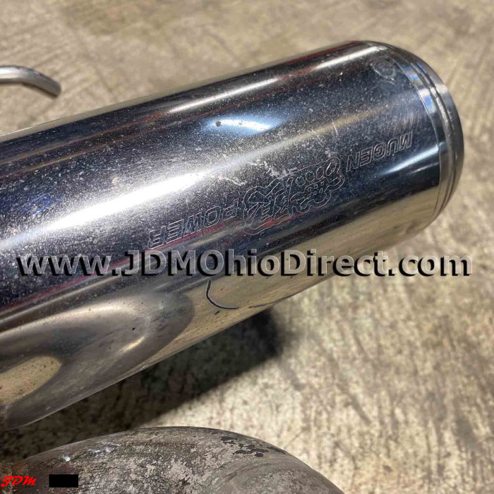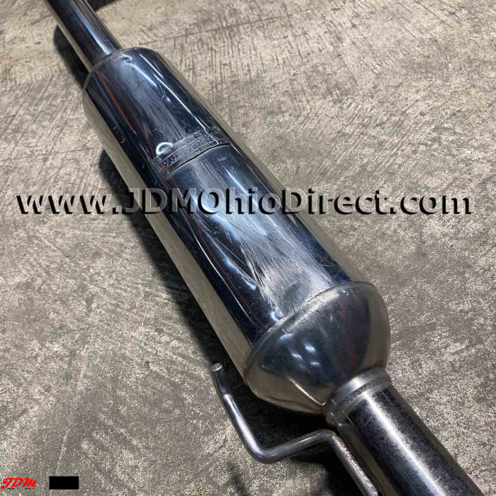 JDM EK9 Mugen Twin Loop Sports Cat Back Exhaust. Full exhaust is in great used condition, minus several some damage on B-pipe resonator as shown. Axleback muffler, mid pipe, and flange bolts/springs included. Actual pictures shown.