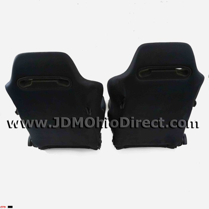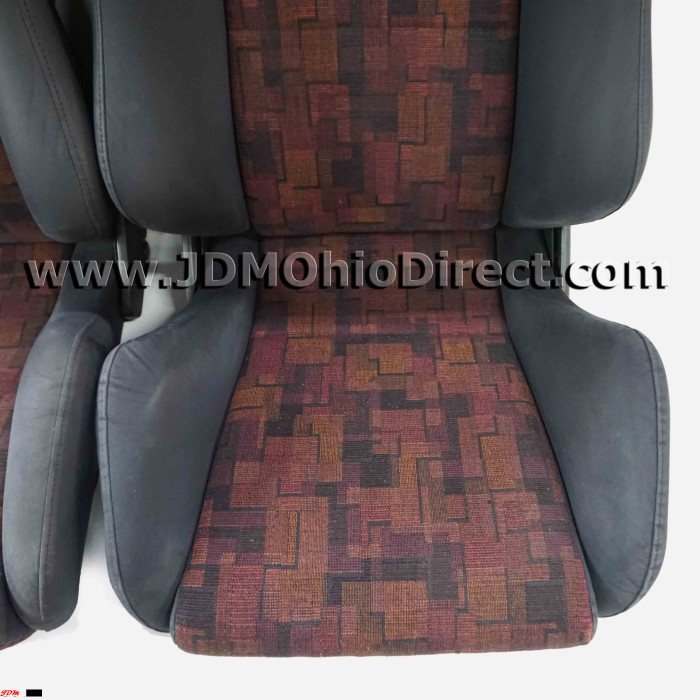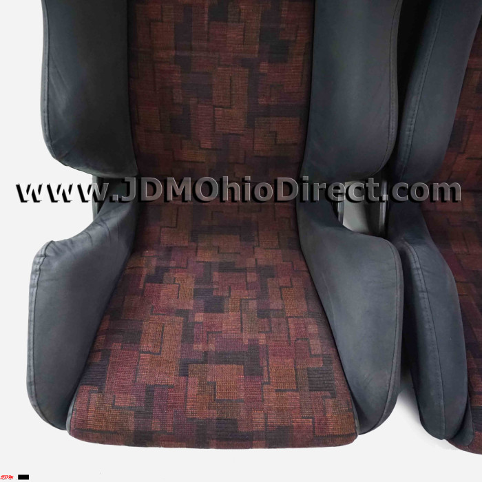 JDM SR3 EVO 4 Recaro Front Seat Set. Seats are in great used condition, with only minor bolster wear on outer right seat as shown. Seats recline with adjustable twist knob for precise seat angling. Seat rails are not included. Actual pictures shown.