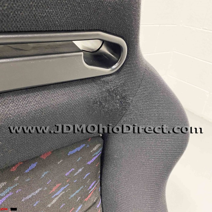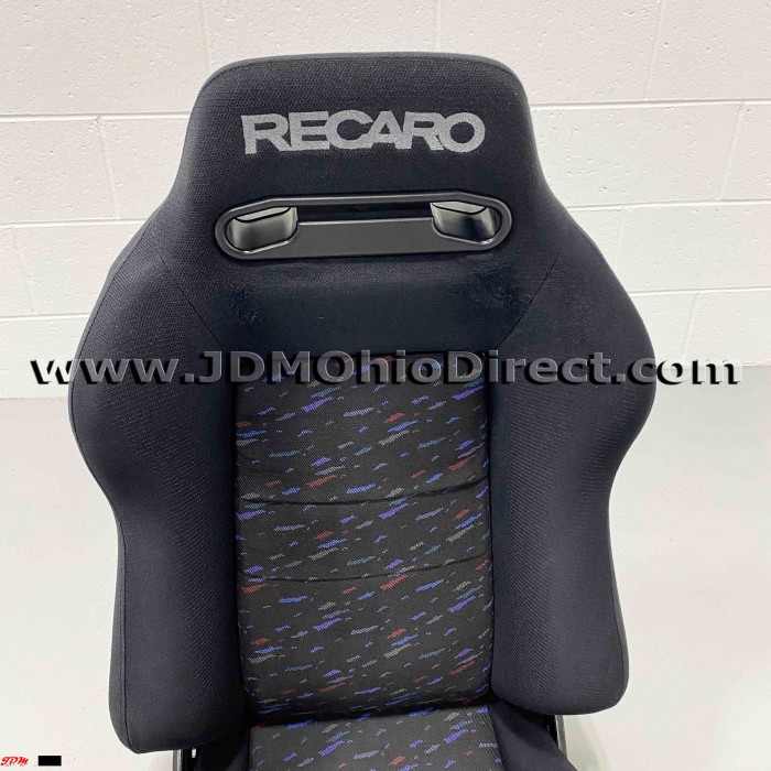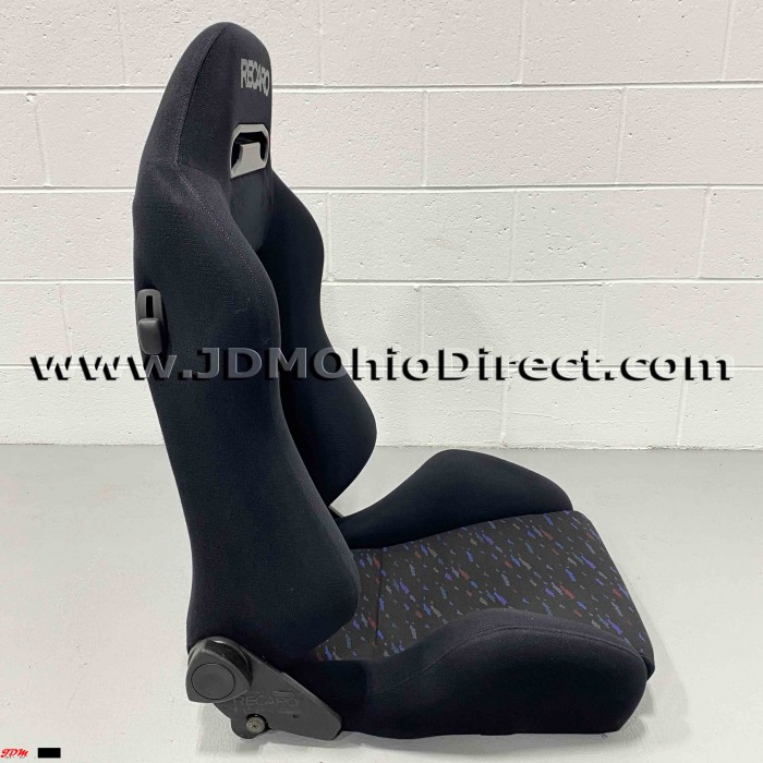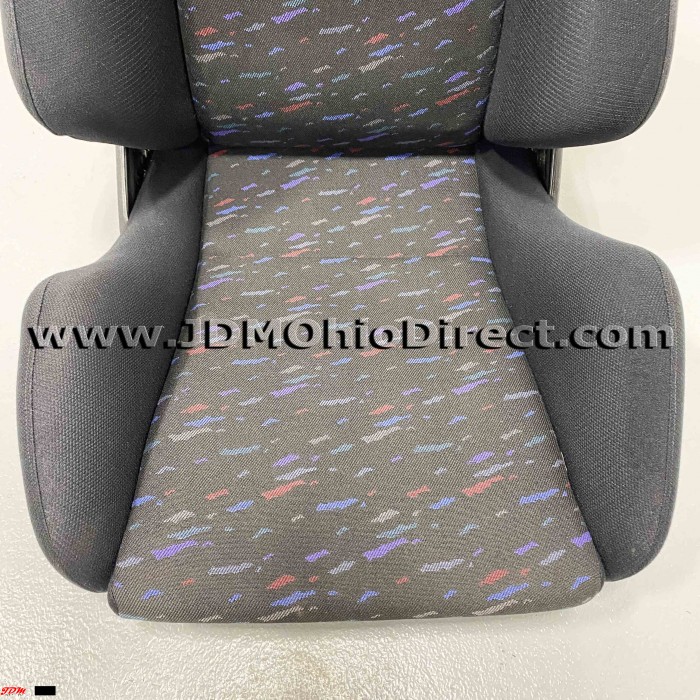 JDM SR3 Recaro Le Mans Confetti Single Seat. Seat is in great used condition, with only minor wear on top shoulder area as shown. Seats recline with adjustable twist knobs for precise seat angling. Actual pictures shown.