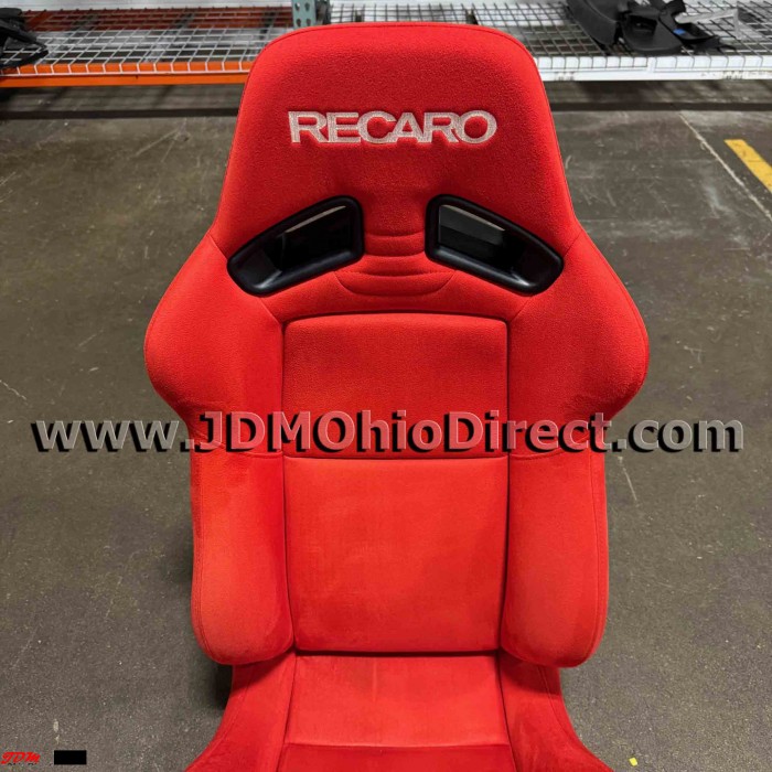 JDM SR7 Red Recaro Single Seat. Seat is in good used condition, has dual reclining twist knobs, and can be used on left or right side. Seat reclines with adjustable twist knob for precise seat angling. Seat rail Not included. Actual pictures shown.