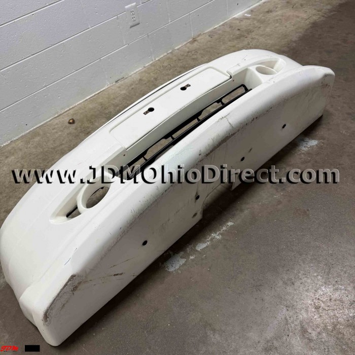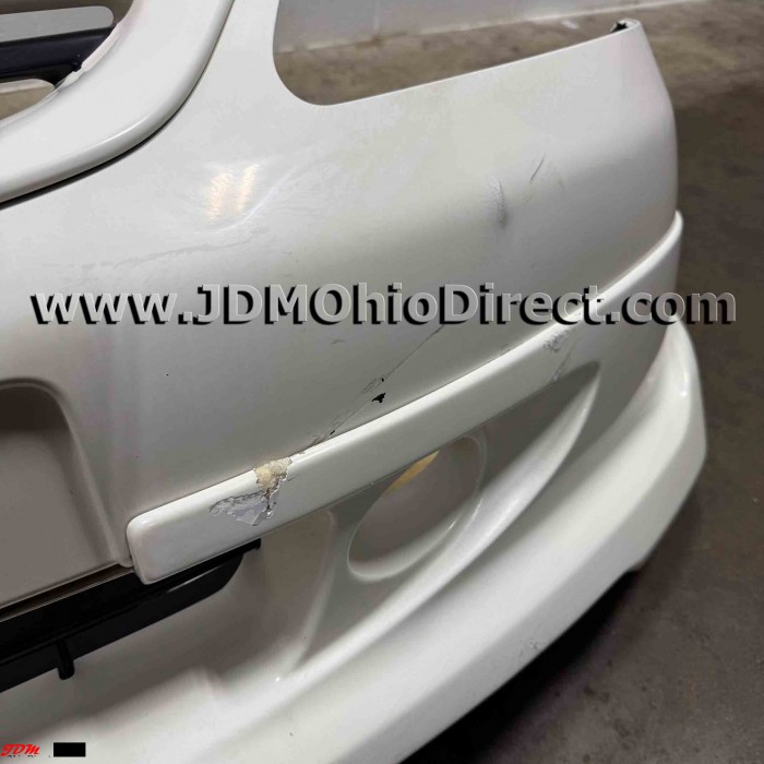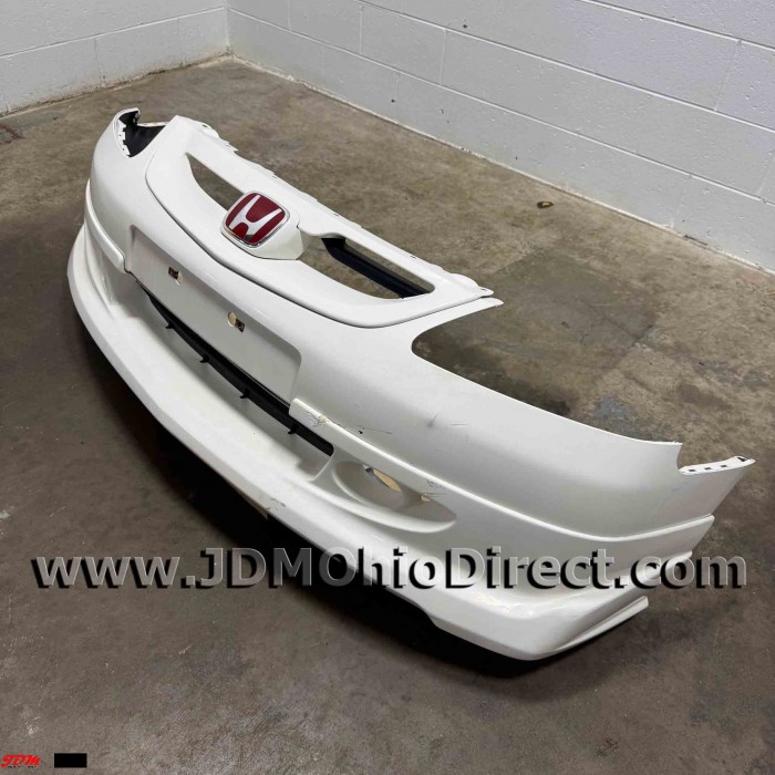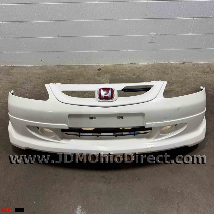 JDM EP3 Civic Type R Front Bumper with Mugen Lip. Facelift 04/05 front bumper, lip and grill are in good used condition. Bumper and lip do have minor impact marks on left side as shown. Front lip has Mugen logo, but we did not see Mugen logo on grill. Lip also includes aluminum brace. Actual pictures shown.