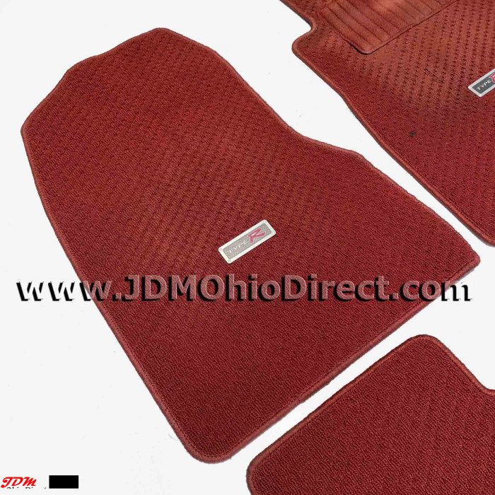 JDM EP3 Civic Type R Red Floor Mat Set​. Floor mats are in great used condition, but does have a small burn on driver and rear mat. EP3 Honda Access red floor mats are designed for RHD vehicles. They can be used in LHD vehicles, but fit will not be perfect. Actual pictures shown.