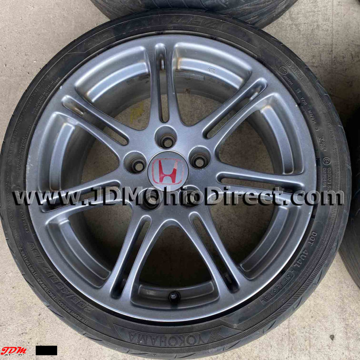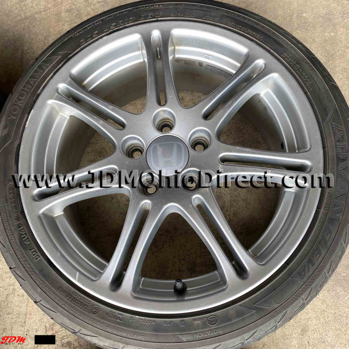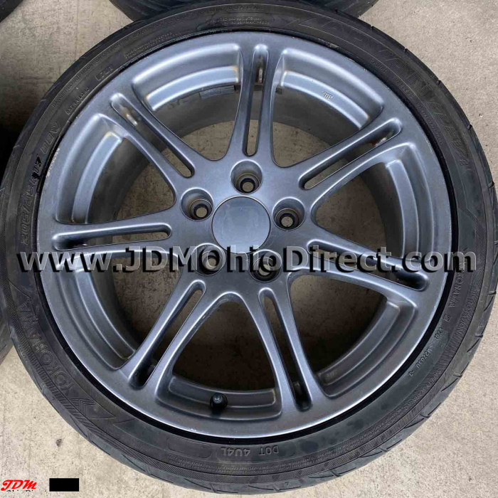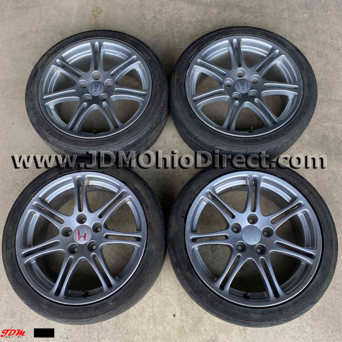 JDM EP3 Type R Gunmetal Wheels with Tires. Wheels are in good used condition, but do have minor rash as shown. Tires have good tread. Actual pictures shown.