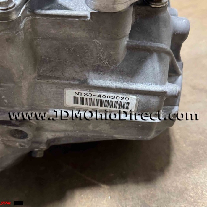 JDM DC5 Integra Type R 05/06 LSD 6-Speed NTS3 K20A Transmission. Transmission is in great used condition with 70k miles, and removed from an 05/06 Integra Type R. Transmission has been opened, inspected, new differential bearings installed, and given a clean bill of health. 6-Speed Hydraulic Transmisison with OEM Helical LSD, and 4.764 Final Drive. The NTS3(05/06 ITR Trans) was an upgrade from the Y2M3(01/04 ITR Trans), same 1st-6th gear, 4.7FD and OEM LSD, but Honda updated 3rd and 4th synchros to carbon coated from the factory. Actual pictures shown.