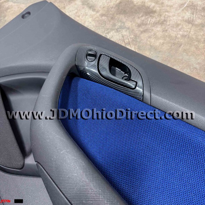 JDM DC5 Integra Type R Blue Door Panels. Door panels are in great used condition, and include Carbon dipped interior handles. Door panels are black with blue inserts. Actual pictures shown.