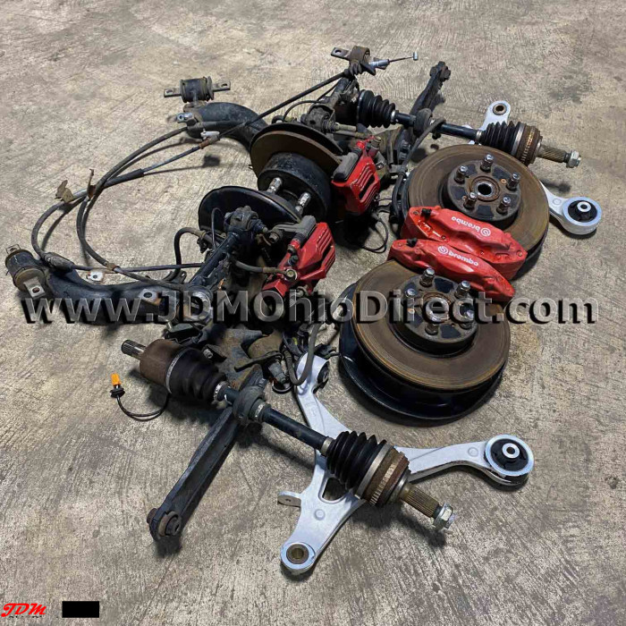 JDM DC5 Integra Type R Brembo Brake Conversion. The set is in great used condition. The JDM DC5 Type R front hubs have a wider stance than the RSX Type S. This requires JDM DC5R axles and lower control arms to be used in combination with the Brembo front calipers and hubs. Lower control arms are aluminum, and much lighter than factory LCAs. Actual pictures shown.