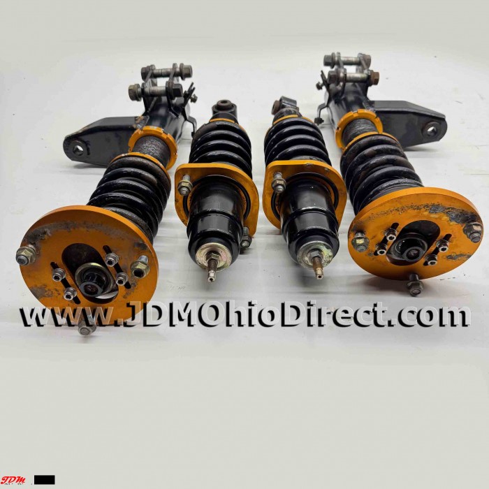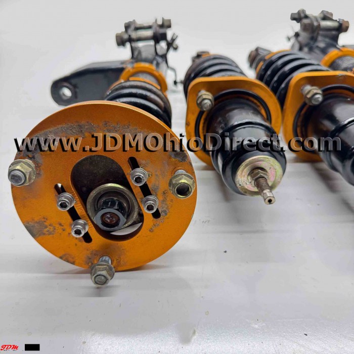 JDM DC5 Integra Type R J's Racing Black Series Coilovers. Coilovers are in used condition, and do have some surface rust as shown. No visible leaks. Suspension has 15-way adjustable dampening for desired comfort and performance. Fronts have spherical upper bushings, and adjustable camber plates. Actual pictures shown.