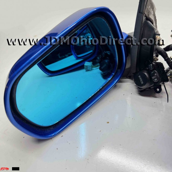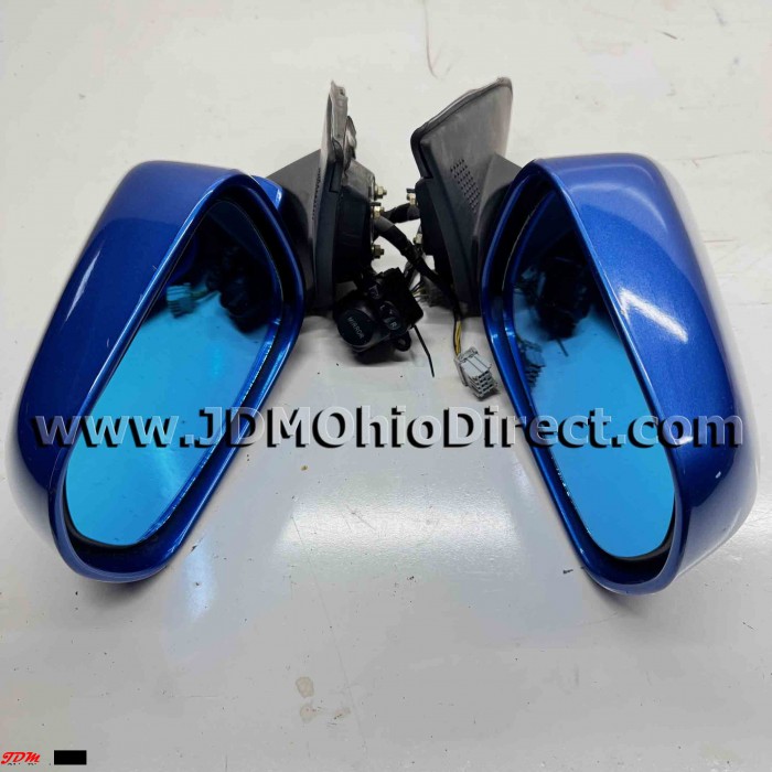 JDM DC5 Integra Type R Power Folding Mirror Set. Mirrors are in great working condition, and include switch with pigtails, and blue overlay lenses. Mirror angles are designed for RHD vehicles, but will fit LHD vehicles. Mirror angles will be off slightly if used on LHD vehicle. Actual pictures shown.