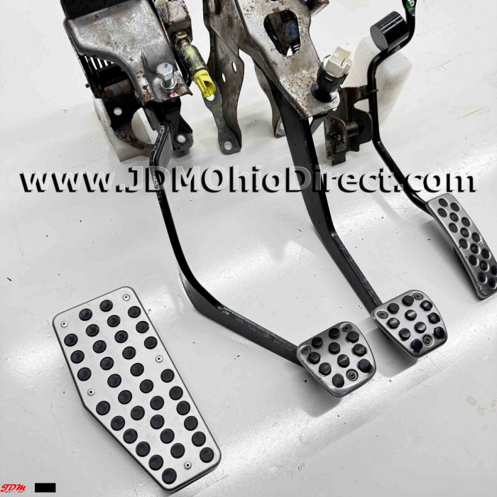 JDM DC5 Integra Type R RHD Aluminum Pedal Set. Pedals are in good used condition, and include matching dead pedal. Pedal set will only fit Right Hand Drive DC5 models. Clutch and brake pedals curve the opposite direction as USDM to straddle steering column. Gas pedal is a direct install to USDM RSX. Actual pictures shown.