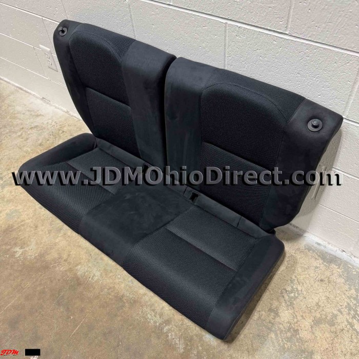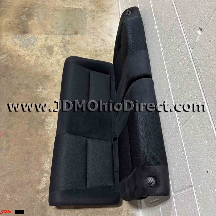 JDM DC5 Integra Type R Rear Seat Set. Seats are in great used condition, and include new release pull tabs and middle bracket. Seats have no sun fade. Seats have carpet on back side of uppers. Material is black suede with mesh center. Actual pictures shown.