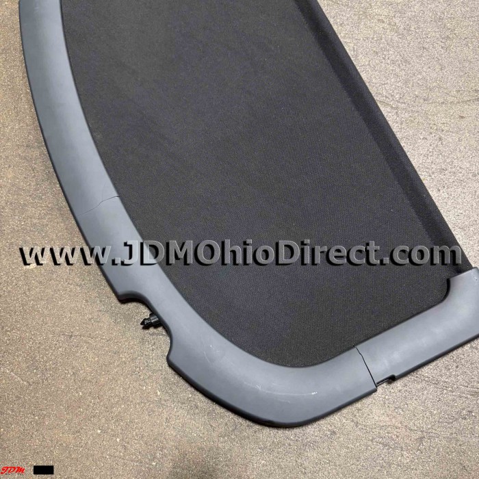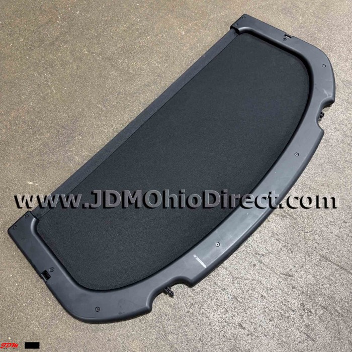 JDM DC5 Integra Type R Rear Cargo Cover. Cargo cover is in used condition, but has several flaws. Top right side has several cracks, and left stud is missing. Cover will still work and stay secure, but does have some damage. Color is black. Actual pictures shown.
