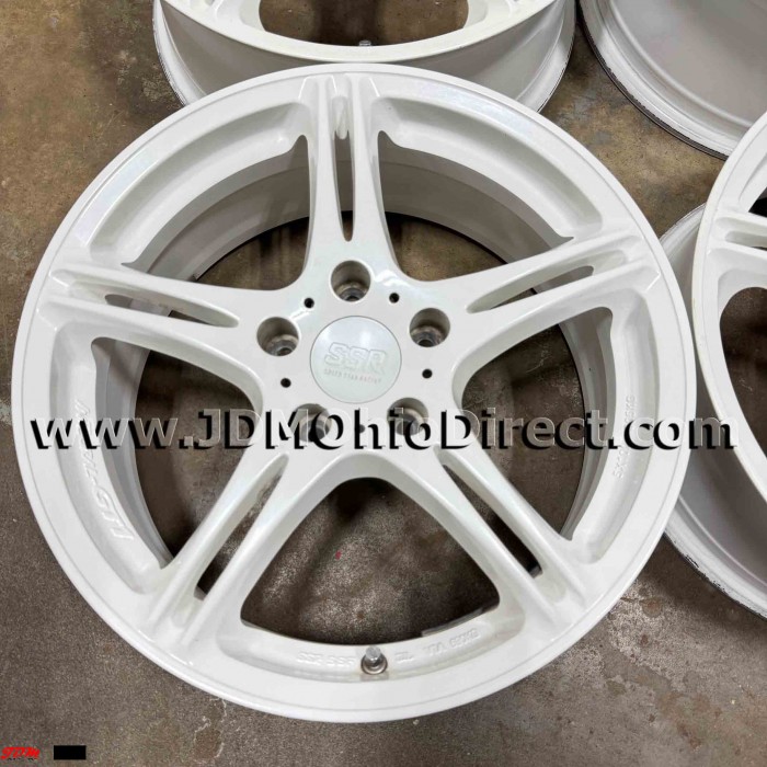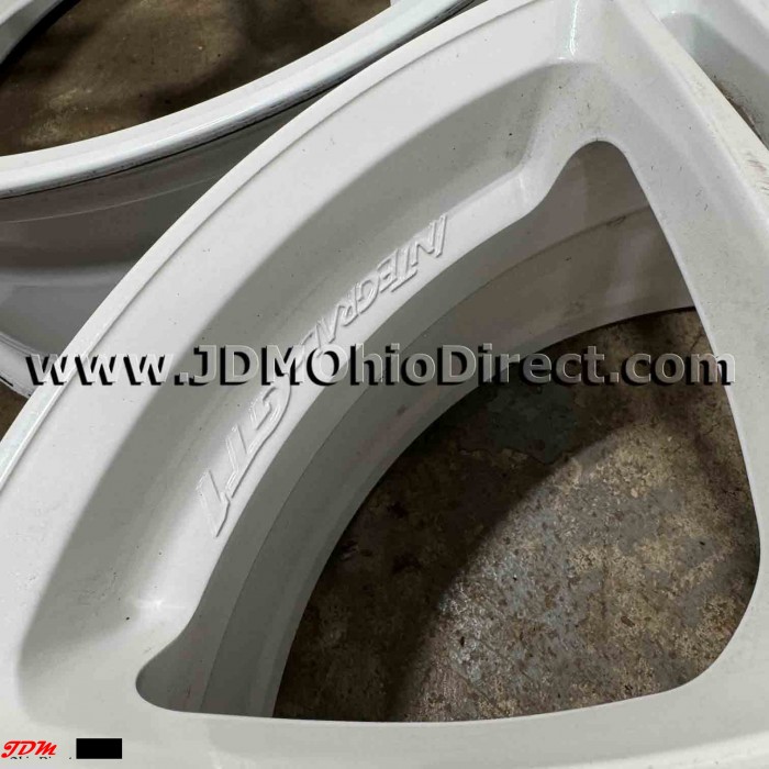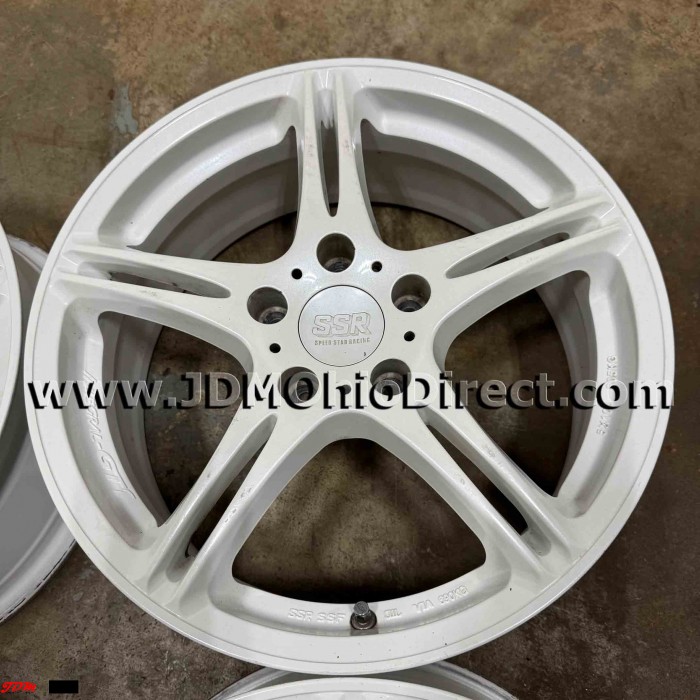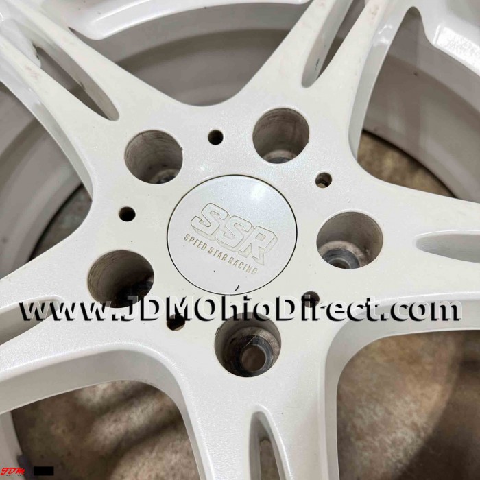 JDM SSR Integral GT1 17" White Wheels. Wheels are in great used condition, and include center caps and SSR valve caps. Wheels have no lip rash(several minor scuffs on spokes). Removed from a DC5R. Actual pictures shown.