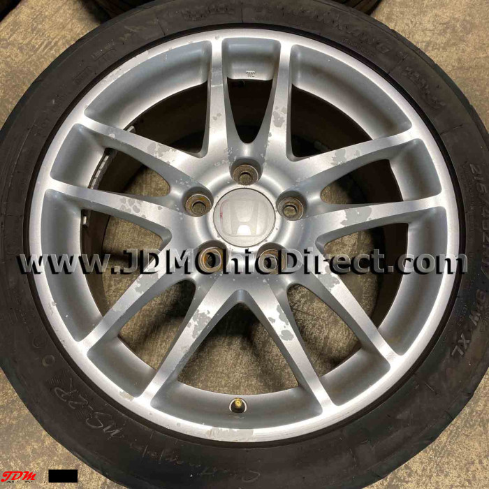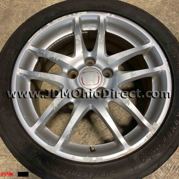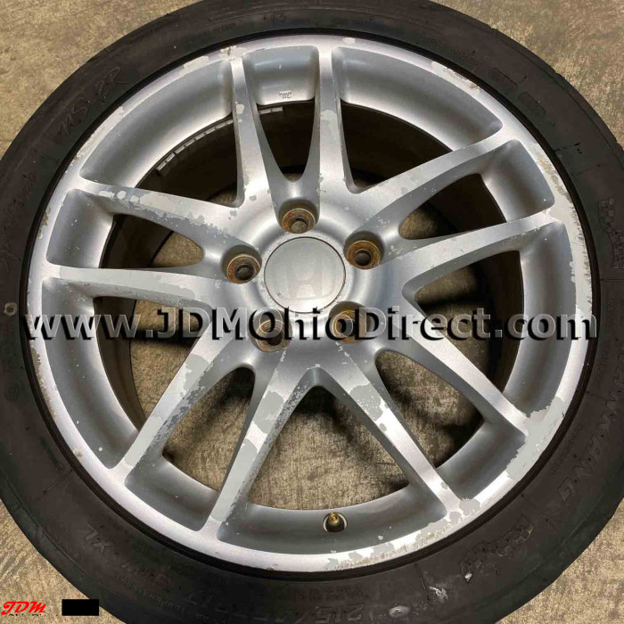 JDM DC5 Integra Type R Silver Wheels. These wheels are in good used condition, but paint is flaking. Set would be great for a fresh resto. Wheels include center caps and good tires. Actual pictures shown.