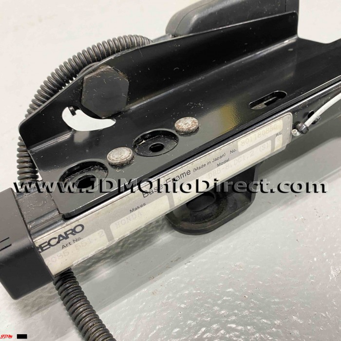 JDM DC2 Integra Recaro Right Low Seat Rail. Seat rail is in great used condition with just a bit of fade on the buckle, and drops the seat 30mm(1.18") from OEM height. Rail is for SR3(DC2/EK9), and SR4(DC5) Recaro seats into a DC2/DB8 Integras. Seatbelt buckle included. Actual pictures shown.