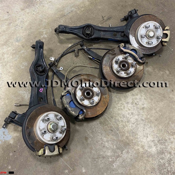 JDM DC2 Integra Type R 98spec 36mm 5 Lug Conversion. 5Lug is in great used condition, with clean rear trailing arms, DIXCEL front and rear rotors, SWAGE stainless steel brake lines, and newer blue pads. Trailing arm bushings will need replaced. Actual pictures shown.
