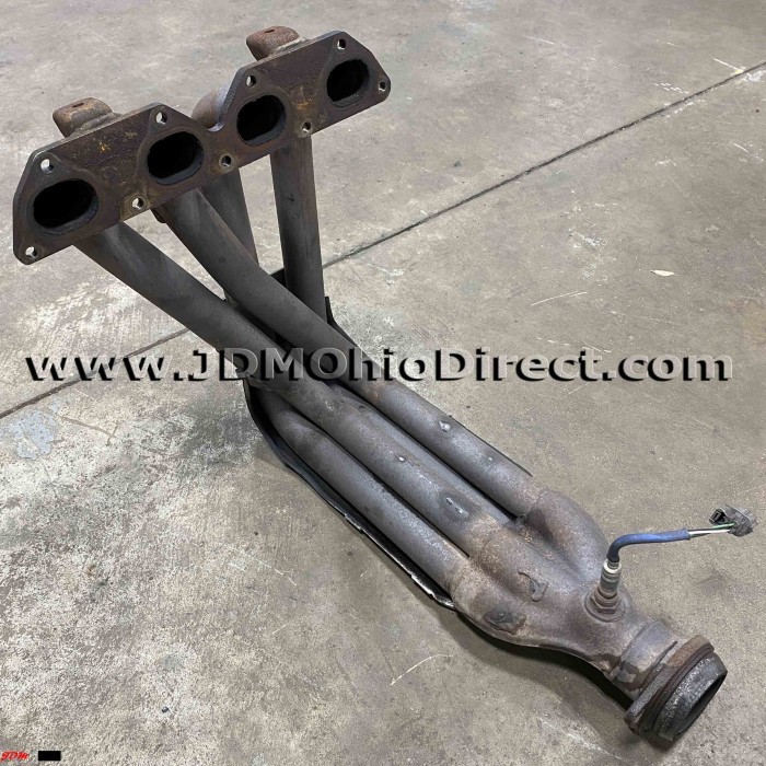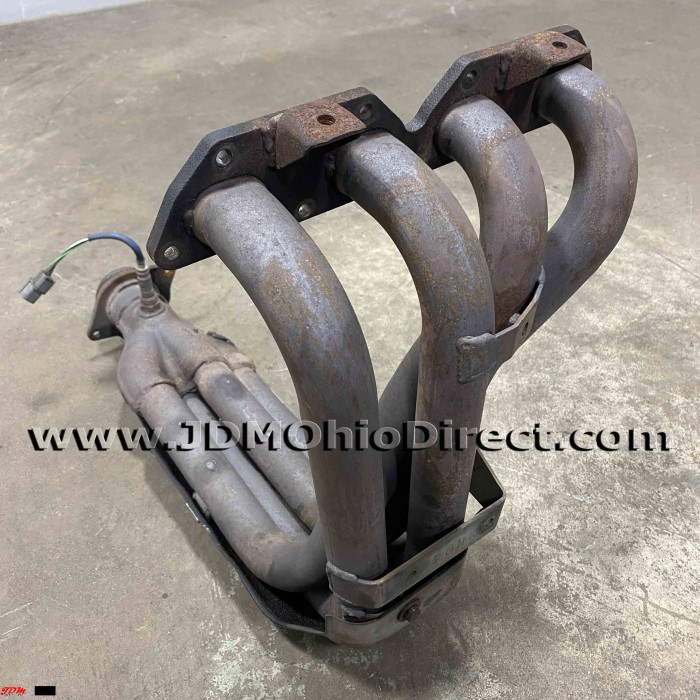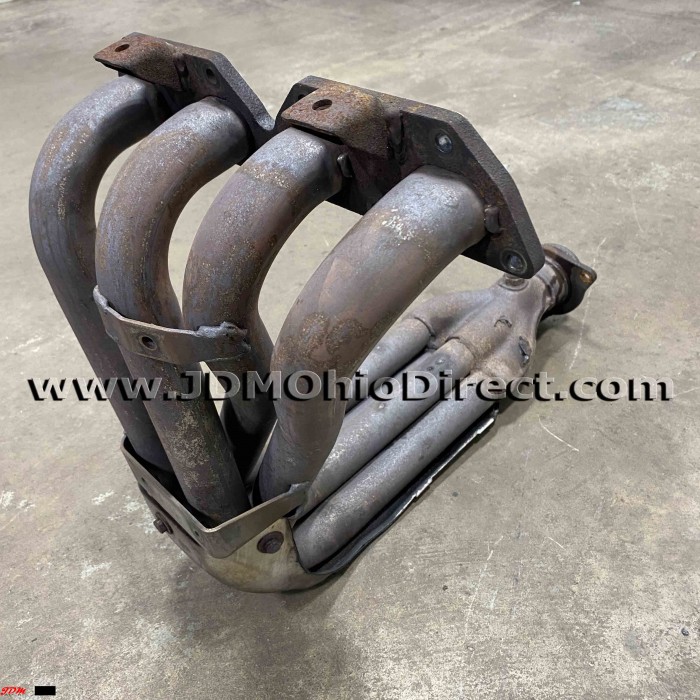 JDM DC2 Integra Type R 98spec 4-1 Header. Exhaust manifold is in great used condition, but does Not include upper heat shield. Lower heat shield has damage as shown, but lower runners are in great condition(only very minor indentations). The 98spec header was an upgrade from the 4-2-1 96spec ITR manifold, incorporating a 4-1 exhaust manifold design. The 4-1 header increases flow and power over standard 4-2-1 manifolds. Actual pictures shown.