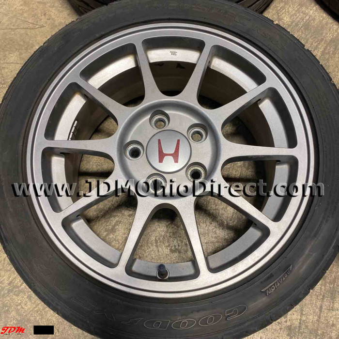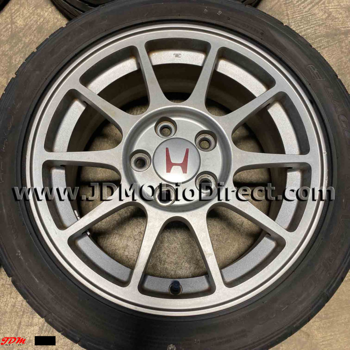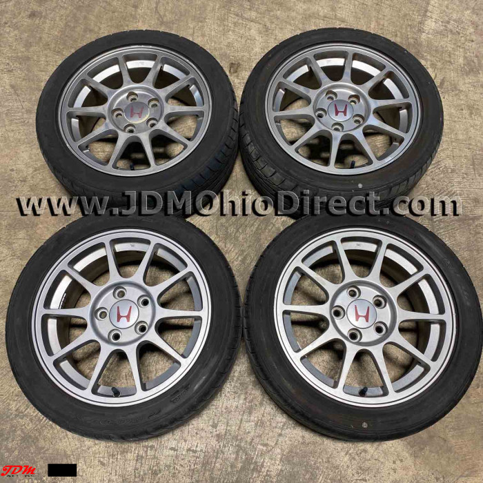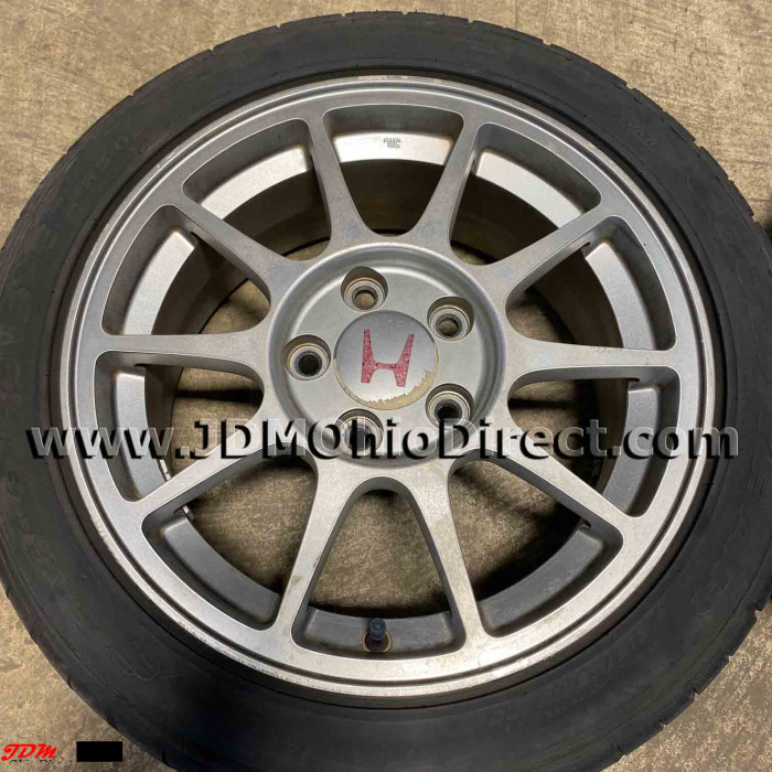 JDM DC2 Integra Type R 98spec Gunmetal Wheels and Tires. Wheels are in great used condition, and tires have lots of tread. Center caps included. Actual pictures shown.