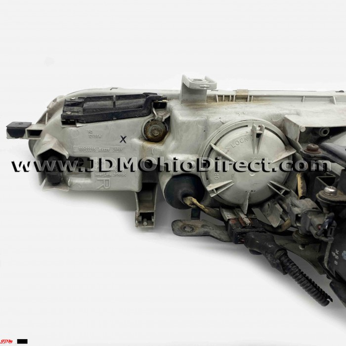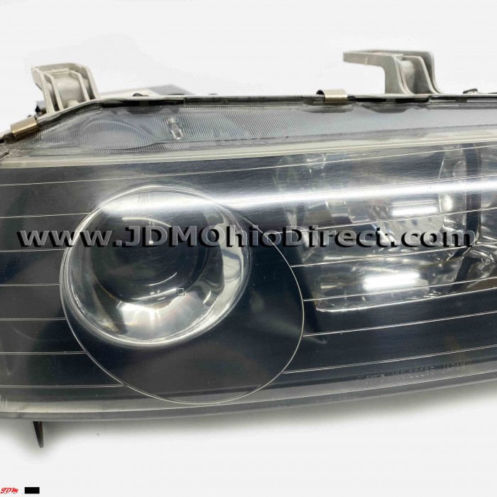 JDM DC2 Integra Type R 98spec Headlight Set. JDM headligths are in good used condition, but do have several flaws. Headlights do have some chrome flake as shown, missing alignment tabs on the corners, and one damaged tab on Left headlight. Overall, nice set with some flaws. Headlights have OEM HIDs. Actual pictures shown.