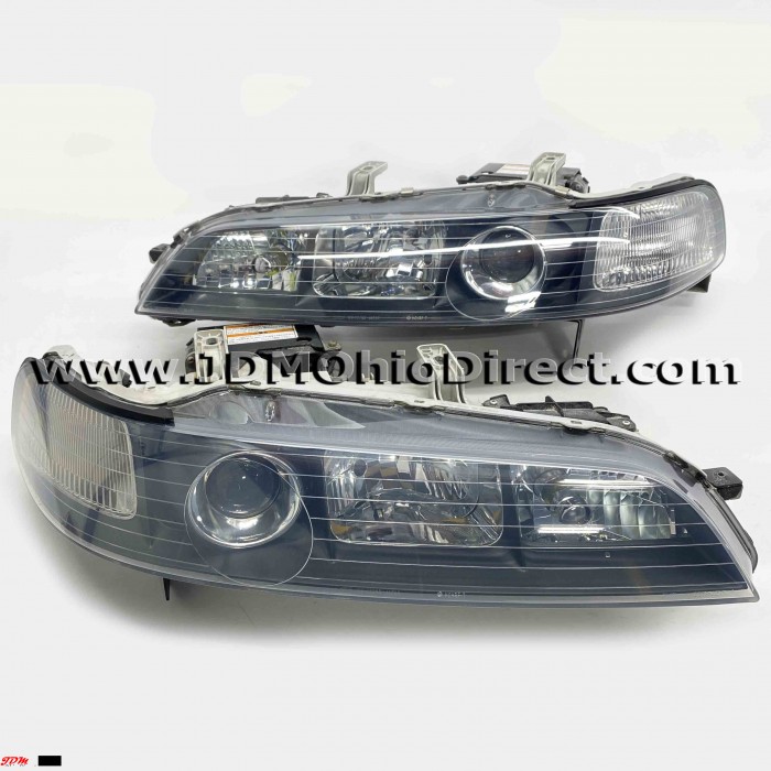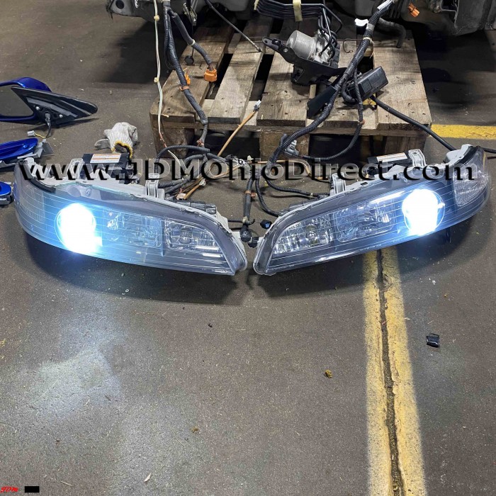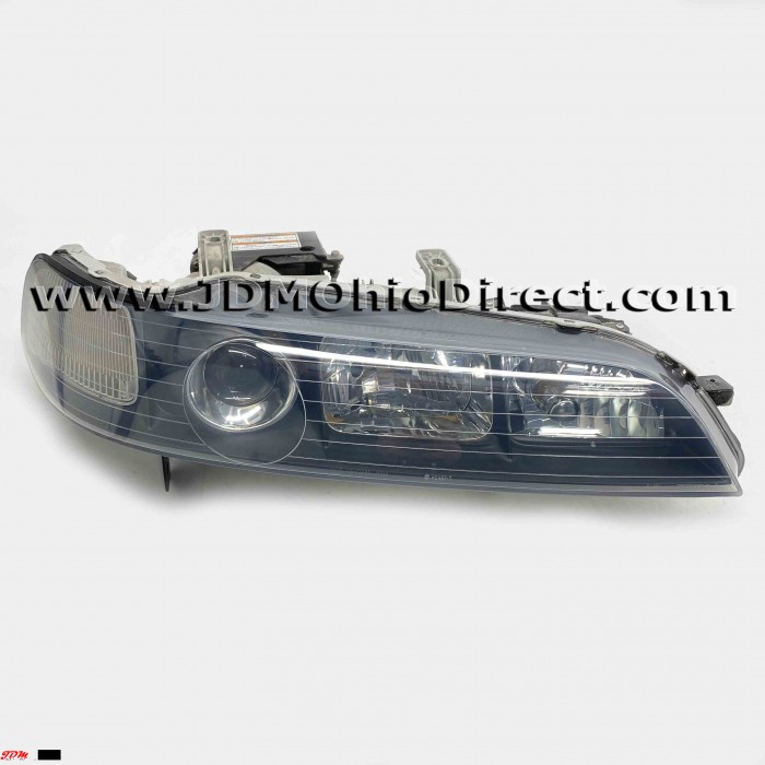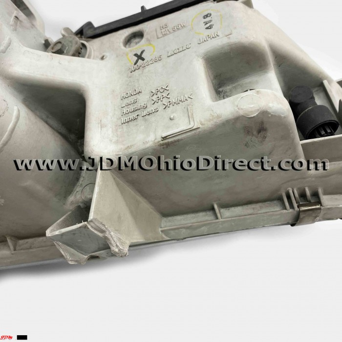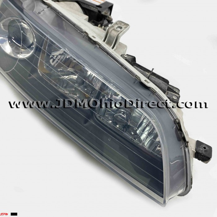 JDM DC2 Integra Type R 98spec Headlight Set. JDM headligths are in good used condition, but do have several flaws. Right Headlight does have some chrome flake around high beam housing, and turn signal. Left headlight has a missing lower mounting tab and missing turn signal socket. Overall, nice set with some flaws. Headlights have OEM HIDs. Actual pictures shown.