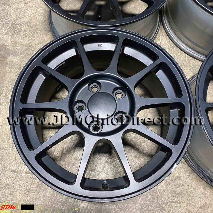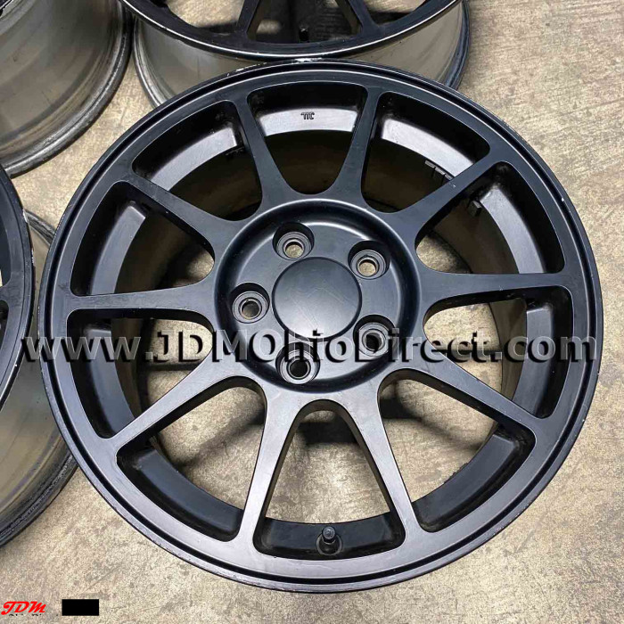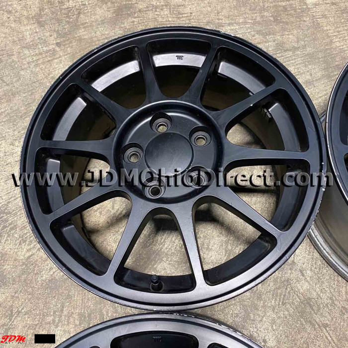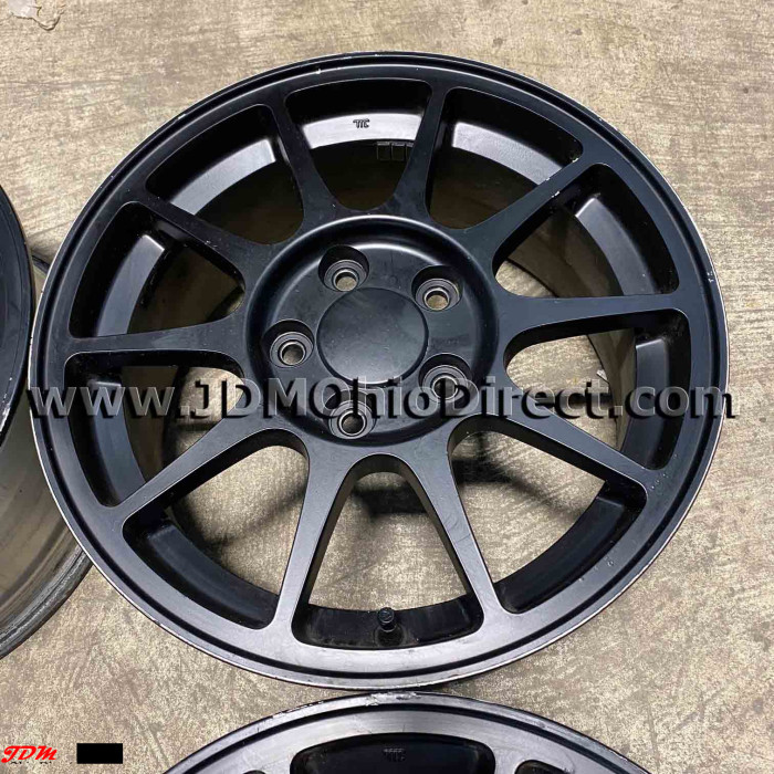 JDM DC2 Integra Type R 98spec Wheel Set. Wheels are in good used condition, and painted black. Wheels are Not bent or cracked. Center caps included. Actual pictures shown.