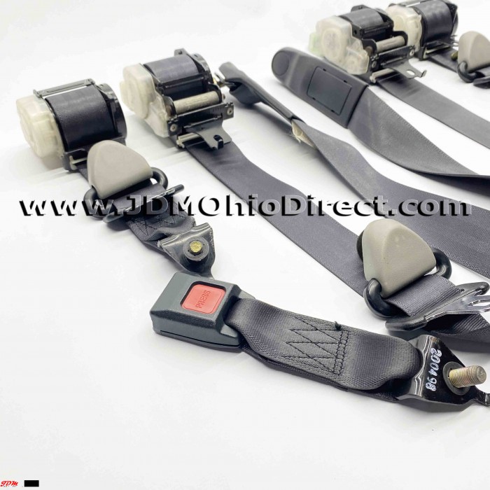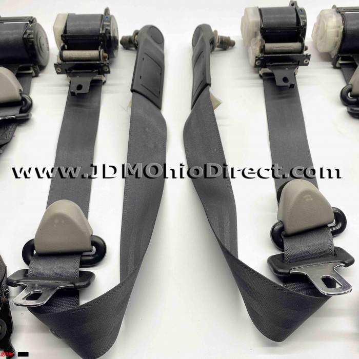JDM DC2 Integra Type R Black Seatbelt Set. Seatbelts are in good used condition. Seatbelt set includes two front belts, two rear belts, two rear buckles, bolts, and ITR gray bolt covers. Belt color is black. Actual pictures shown.