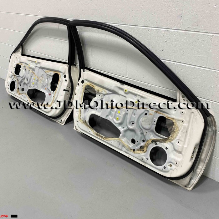 JDM DC2 Integra Type R Door Shell Set. Doors are in great used condition, with no rust or visable dents. All rubber and moldings are in excellent shape. Type R doors do not have side moldings, which is great for anyone replacing DC2R doors, or shaving moldings. Available in Champ White. Actual pictures shown.