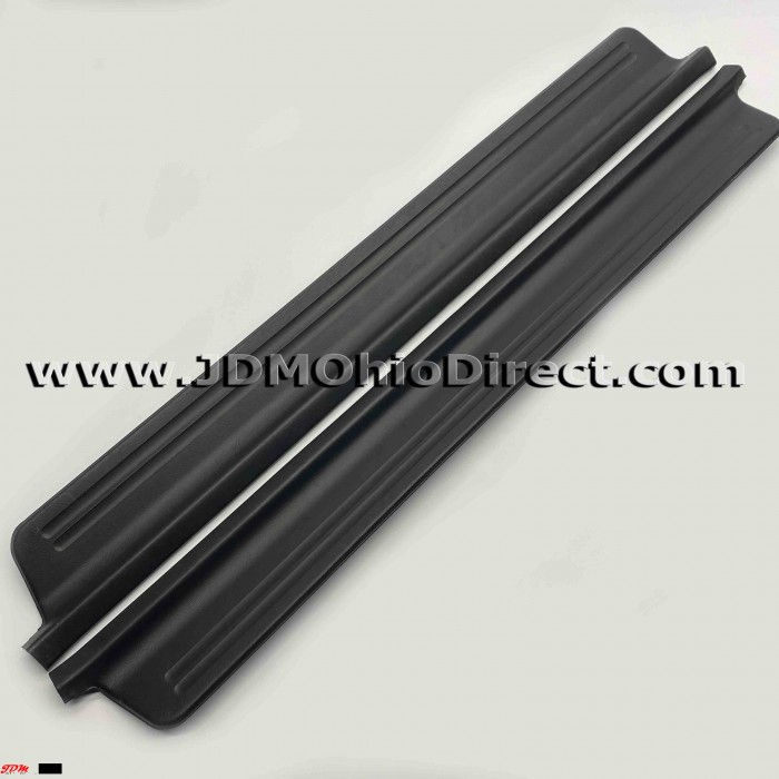 JDM DC2 Integra Type R Door Sill Trim Set. Door sill set is in good used condition, with broken pins, but still usable with no broken mounting tabs. Color is black. Actual pictures shown.
