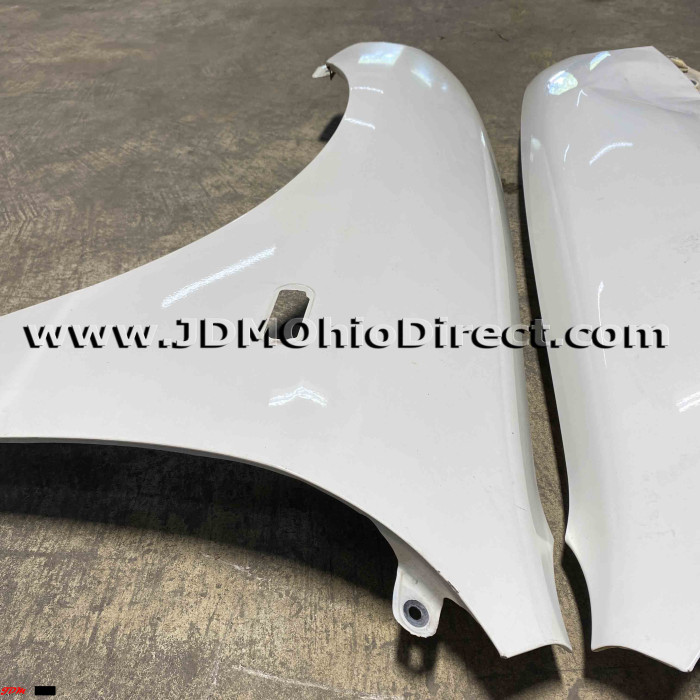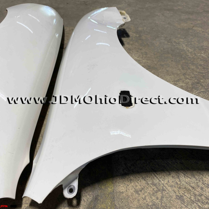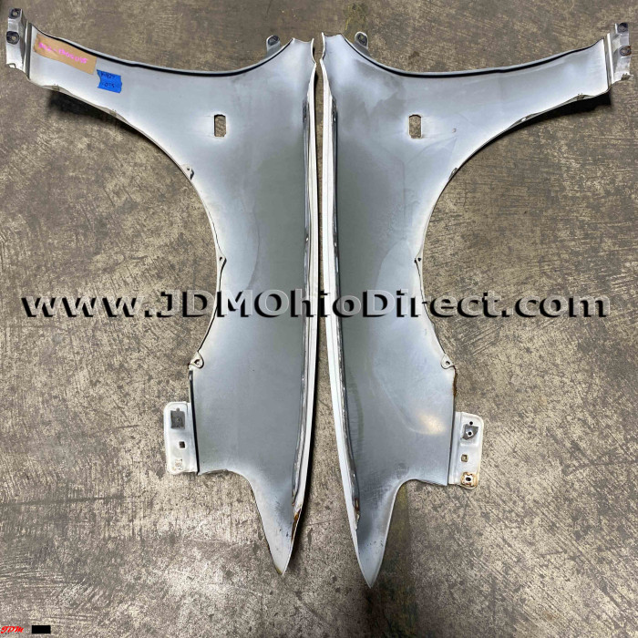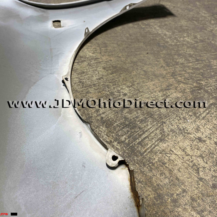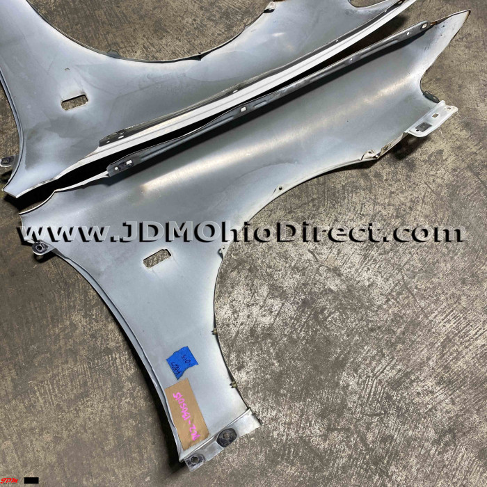 JDM DC2 Integra Type R Fender Set. Fender set is in decent used condition, but does have some flaws. Right fender has large dent towards the front, and bumper tab is rusted. Left fender is good, but has been repaired about headlight area. Overall, fenders are in repairable condition, but will need some work. Actual pictures shown.