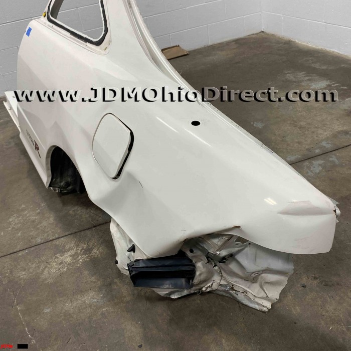 JDM DC2 Integra Type R Rear Quarter Panel Set. ​Quarter panels are in great used condition, but left quarter has collision damage. Quarters have no rust. Right quarter is in great condition. JDM quarters do not have side molding holes, which is great for eliminating side moldings. Sold as set. Actual pictures shown.