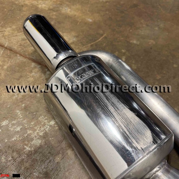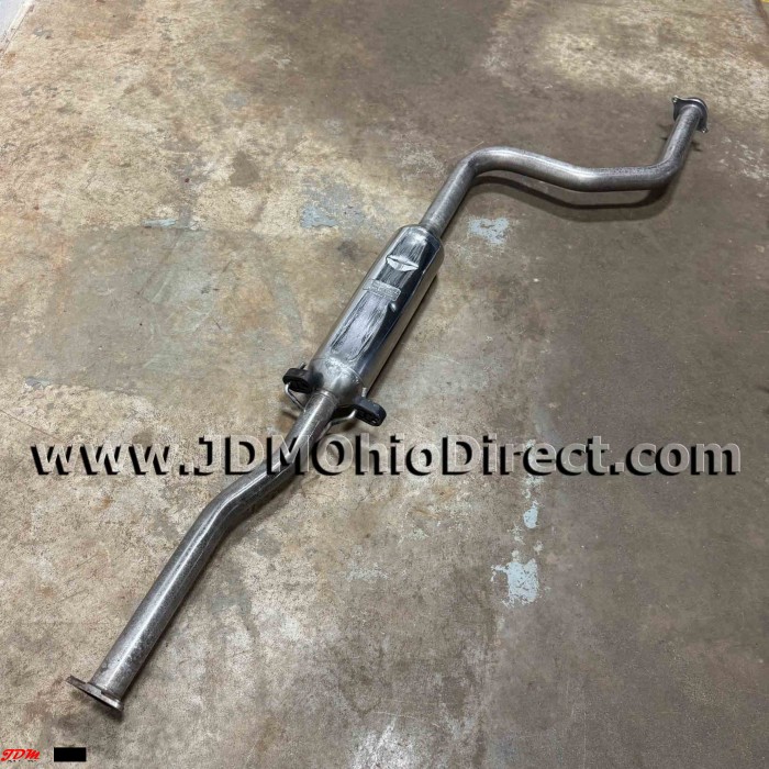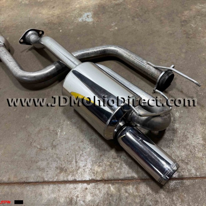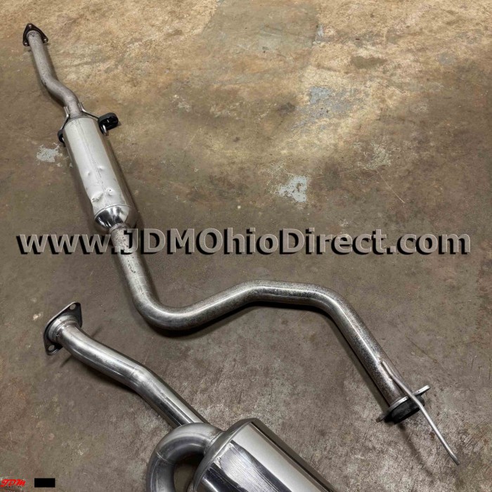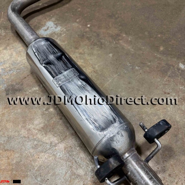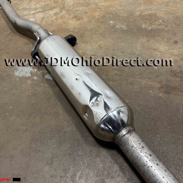 JDM DC2 Mugen Twin Loop Sports Cat Back Exhaust. Full exhaust is in great used condition, minus some scratches on underside of muffler and dents/scratches to B-pipe resonator(lowered car). Axleback muffler, B-Pipe, and flange bolts/springs included. Actual pictures shown.