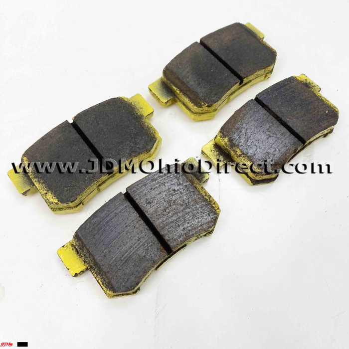 JDM EK9/DC2 Spoon Sports Rear Brake Pads. Spoon brake pads are in good used condition, with 8mm of life left as shown. Designed to provide excellent stopping power and superior level of control with respect to cornering power while also being high fading, low wear on the rotor, long lasting, and effective at low temperatures. Sold as set, left and right rear. Actual pictures shown.