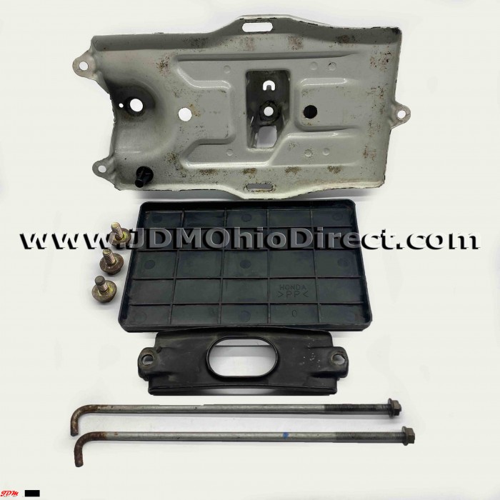 JDM EK9/DC2 Type R Battery Tray Kit. Battery tray kit is in great used condition, and includes base, small plastic tray, tie downs, and base hardware. Kit can be used with JDM or USDM batteries(USDM battery will require USDM plastic tray). Actual picture shown.