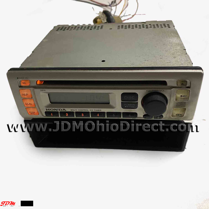 JDM EK9/DC2 Type Rx Radio CD Player. JDM CD player is in great used condition, and all channels are functional. Radio station range is 75-95 MHz. The Rx radio is very rare, and only offered in the 00 Type Rx model. Radio lights up amber, but right side appears to have a bulb out. Actual pictures shown.