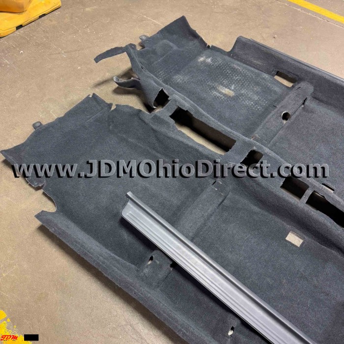 JDM DC2 Integra Type R RHD Black Carpet. Carpet is in good used condition, but one door sill is unattached. Carpet is for RHD, but can be slightly modified to fit LHD vehicles as well. Actual pictures shown.