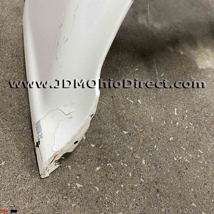 JDM EK9 Civic Type R 97spec Front Bumper​. Bumper is in used condition, with some flaws. Both bumper/fender tabs are damaged, sides are drilled for bumper tie downs, and paint is flaking in several areas. Overall, it's a good bumper to repaint. Color is spray painted white. Type R lip not included. Actual pictures shown.