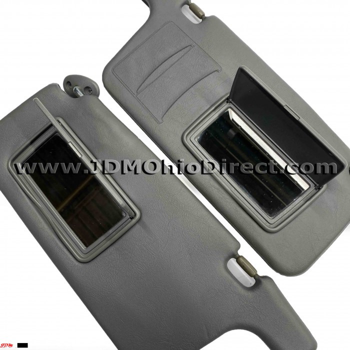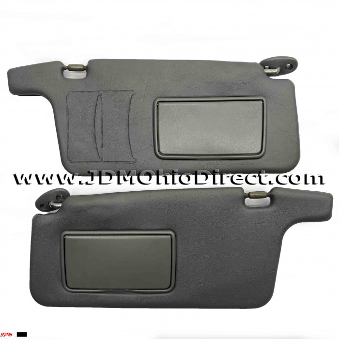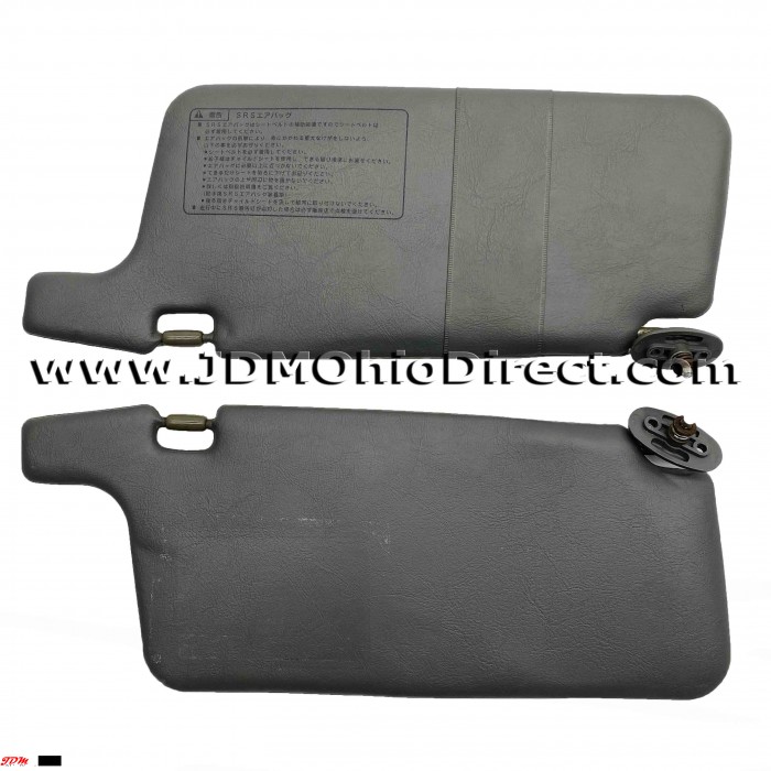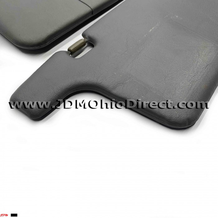 JDM EK9 Civic Type R Visors. Visors are in good used condition, with a couple flaws. SRS warning label is missing, and there is a couple small indentations as pictured. Both driver and passenger visors are equipped with mirrors, along with card solt holders on right visor. Color is dark gray. Actual pictures shown.