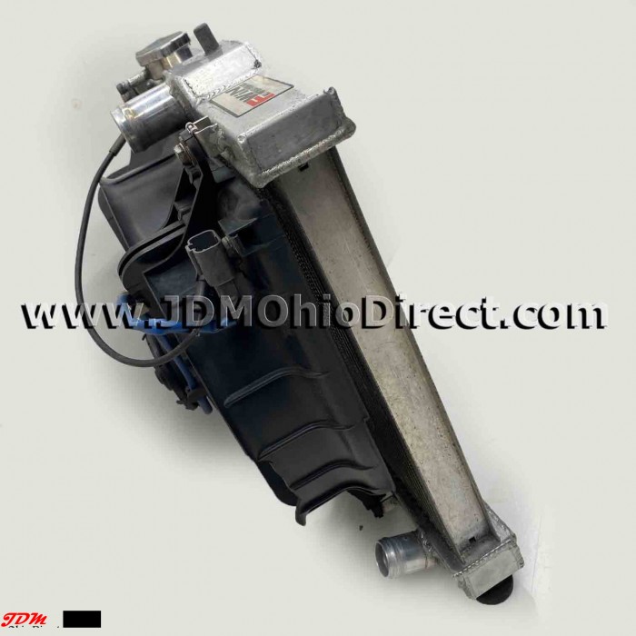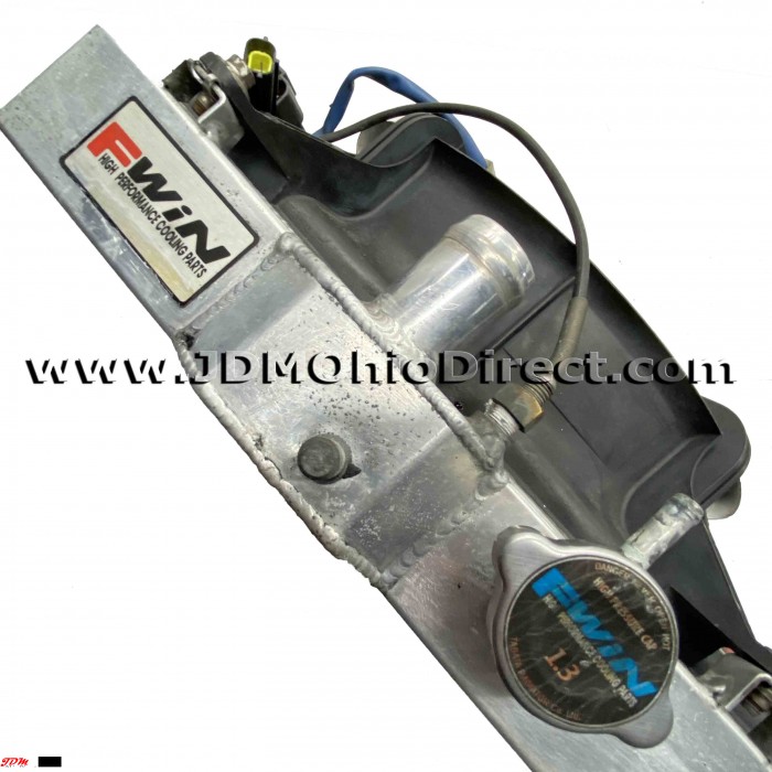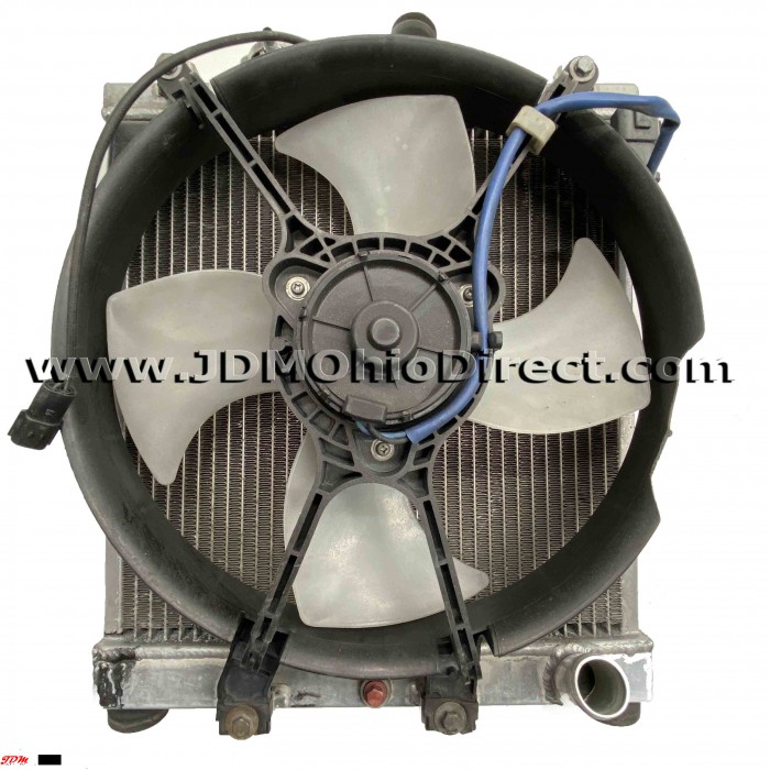 JDM EK9 Civic Type R Tabata FWIN Aluminum Radiator with Fan. Radiator is in good used condition, and includes fan and matching radiator cap. This aluminum radiator is rare and discontinued! Fan shroud does have a crack on the left side. Actual pictures shown.