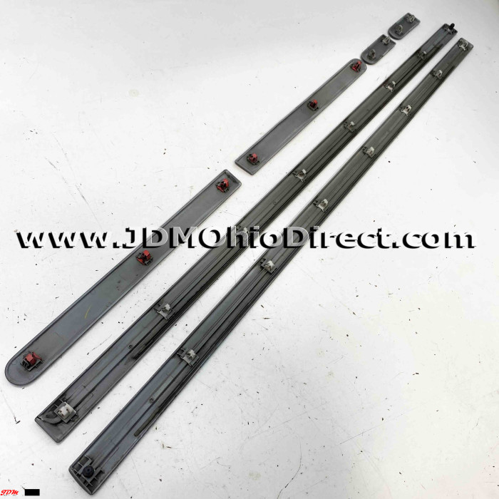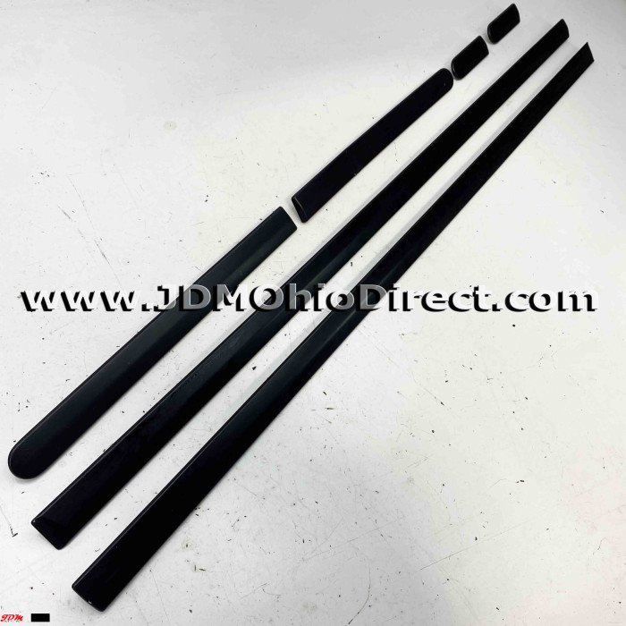 JDM EK9 Civic Type R Thin Side Moldings. Moldings are in great used condition, except for one small indentation on quarter molding, and 2 missing clips. Color is matte black(Spray Painted). Actual pictures shown.