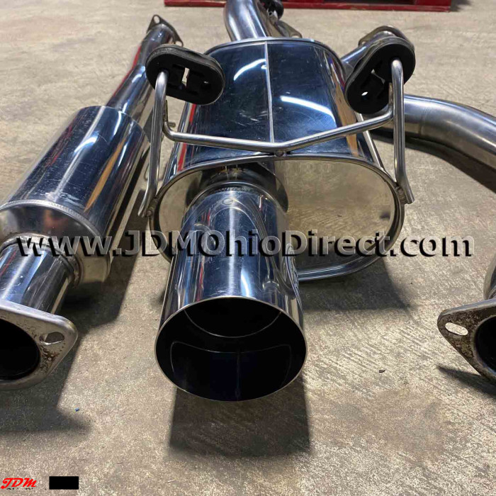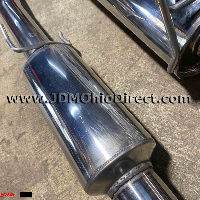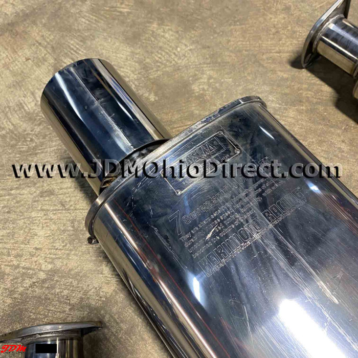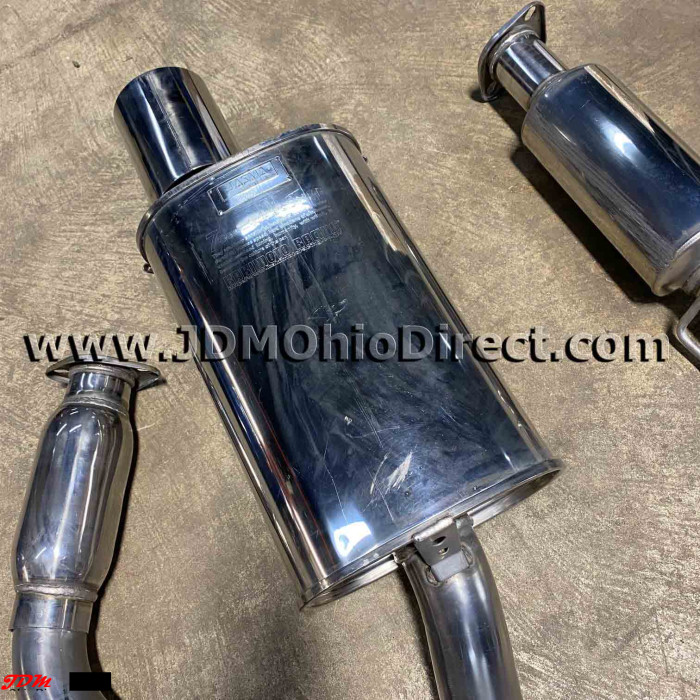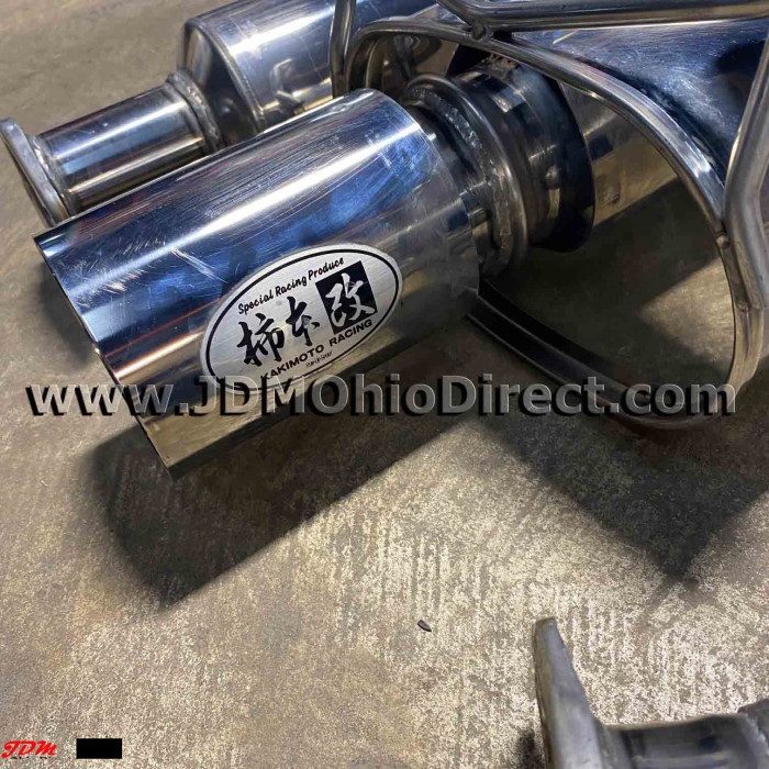 JDM DC2 Integra Type R Kakimoto Racing Cat Back Exhaust. Exhaust is in great used condition, with only minor scratches as shown in pictures. 70mm(2.75in) diameter, 3pc full exhaust. Exhaust does not include hardware. Actual pictures shown.