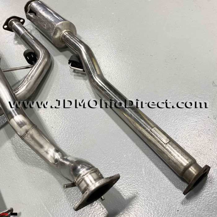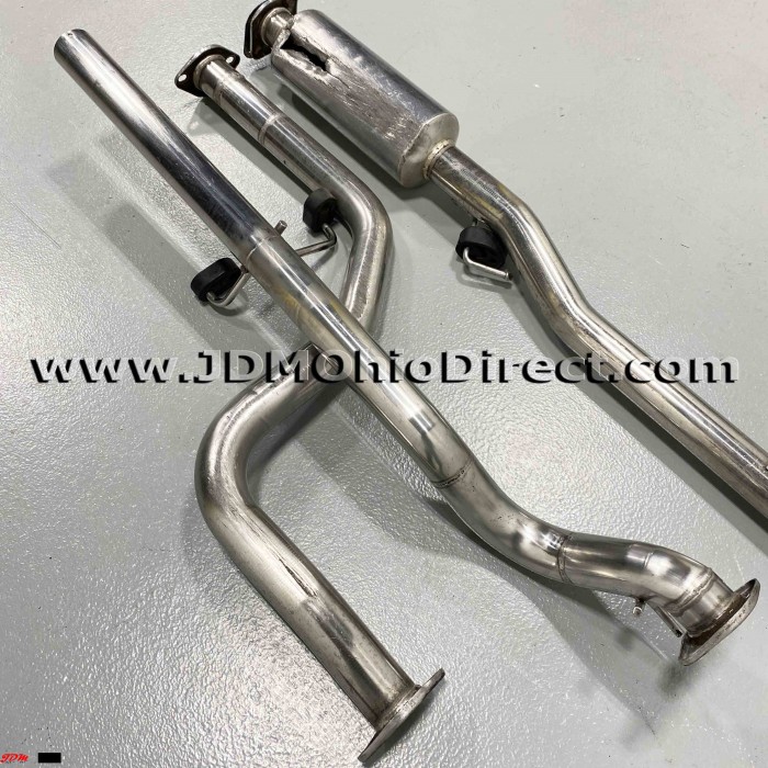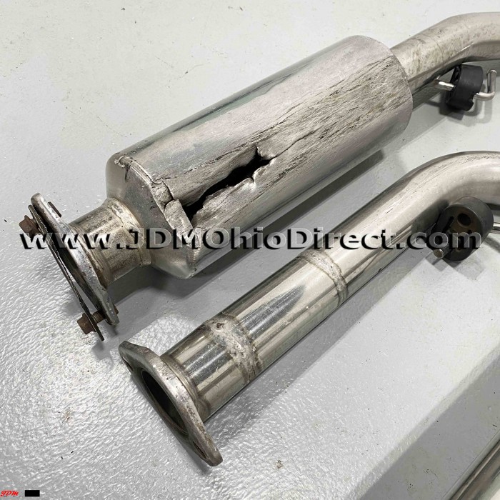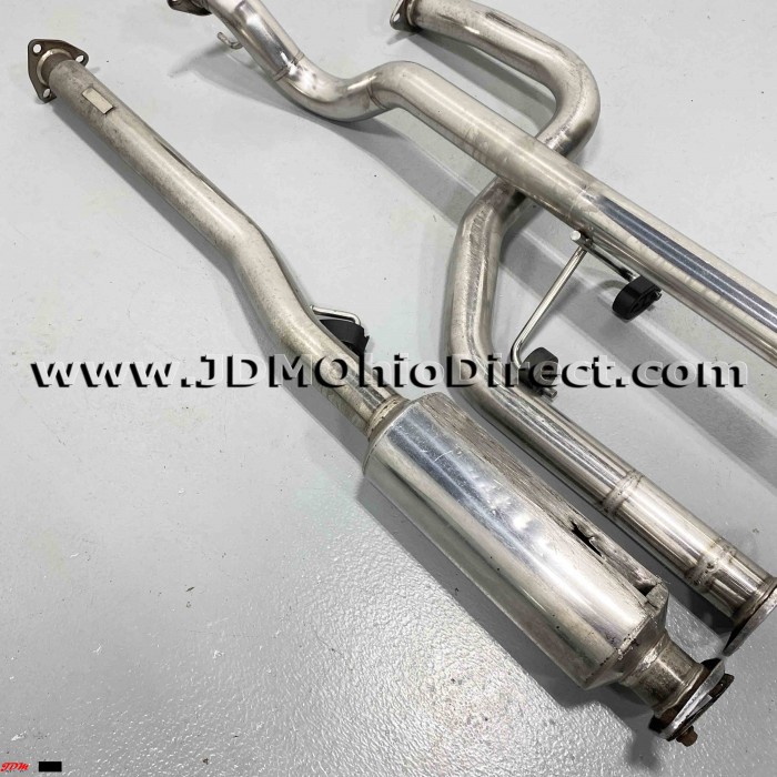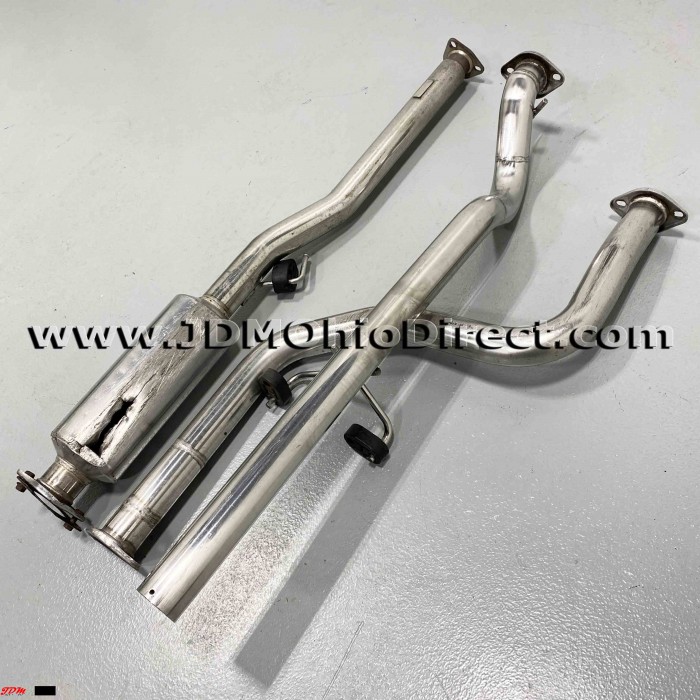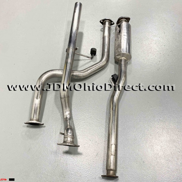 JDM EK3 Civic ViRS Zerofighter Style Cat-Back Exhaust. Exhaust is in good used condition, but B-pipe does have damage as shown. B pipe is Kakimoto and Muffler is an unknown brand. B-pipe has a hole as shown in resonator from vehicle being low. Actual pictures shown.